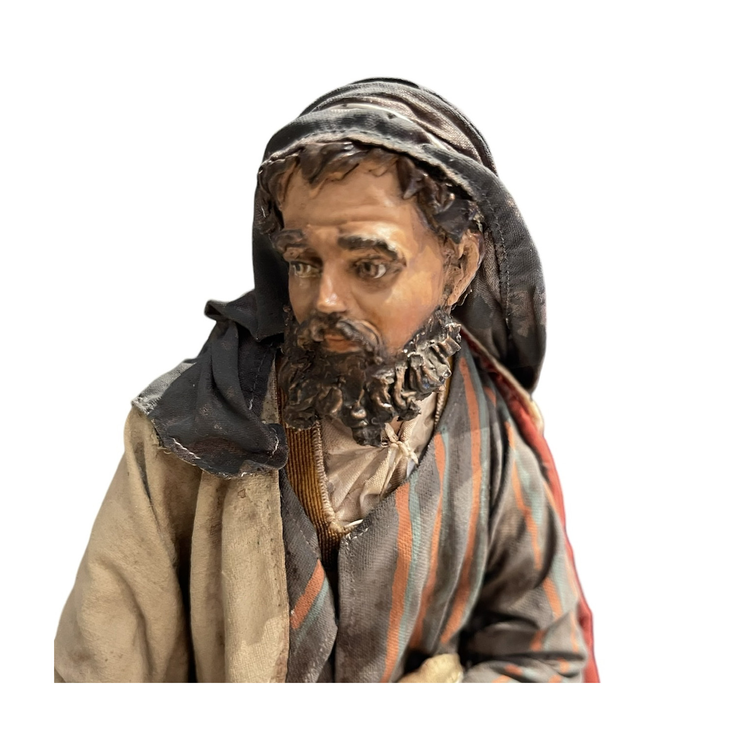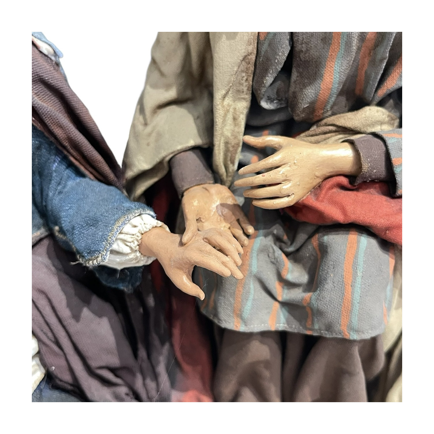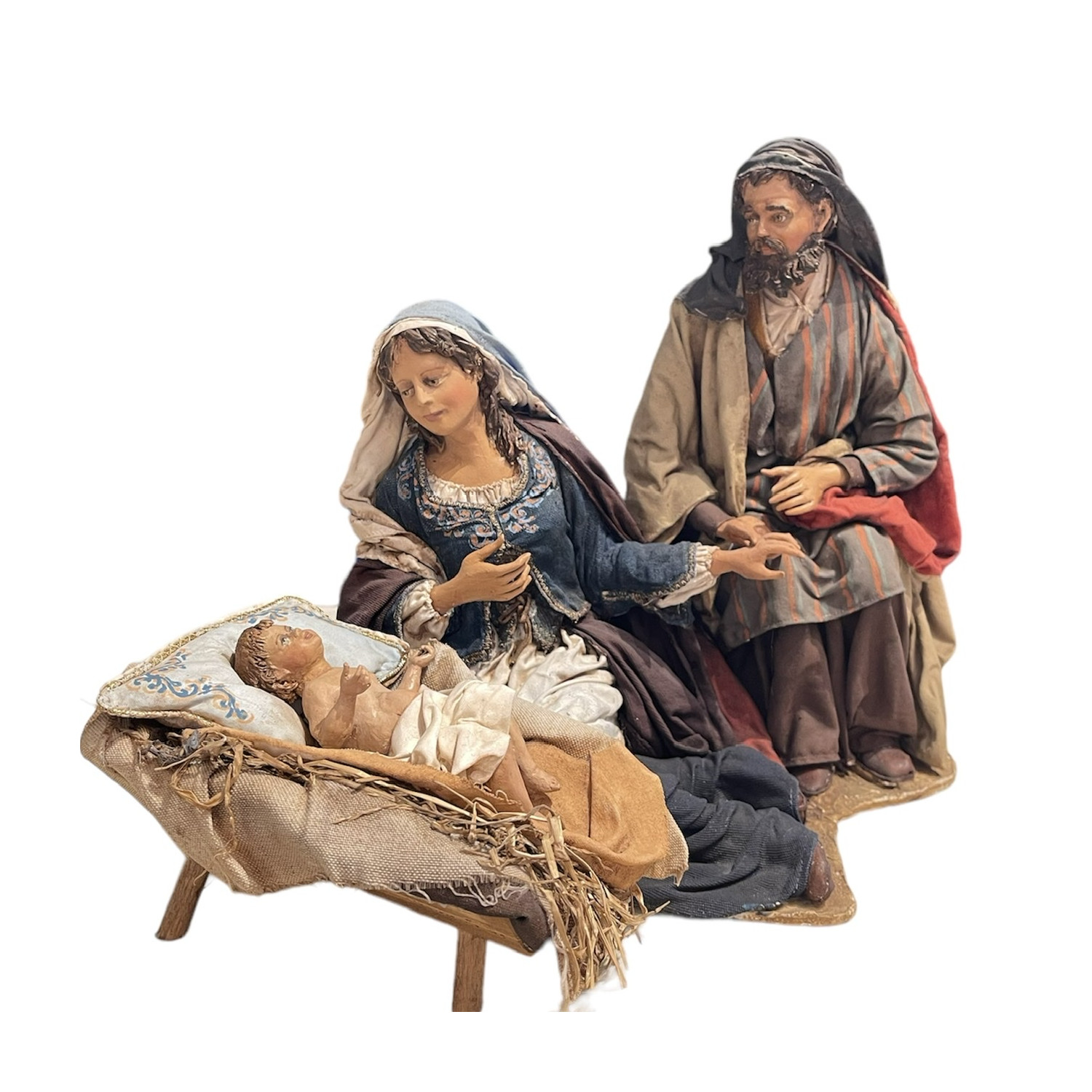 Terracotta nativity dressed in completely handmade fabric clothes.