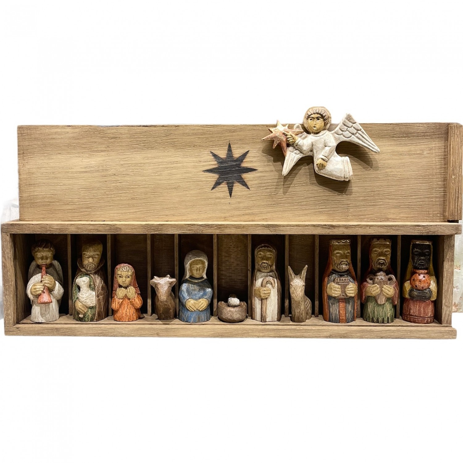 nativity scene with wooden box. statuettes 7 cm high