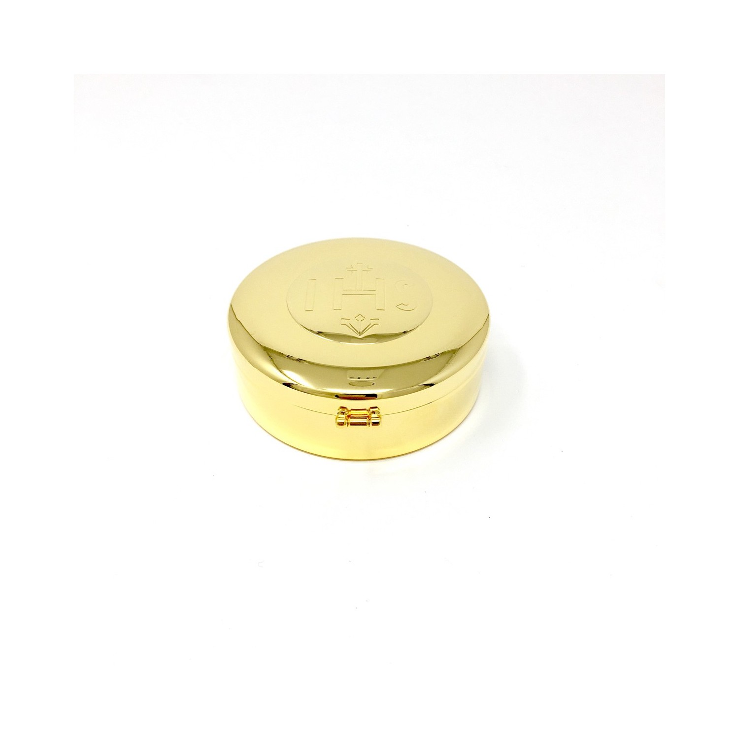 Gilded brass case with large IHS symbol