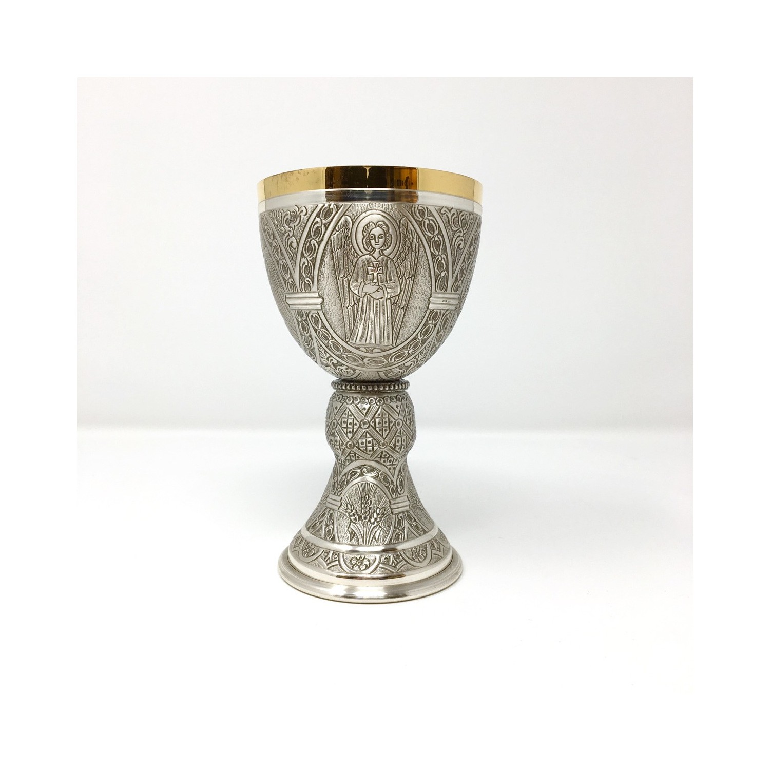 800 silver chalice completely hand-chiseled. With symbols of the four evangelists.