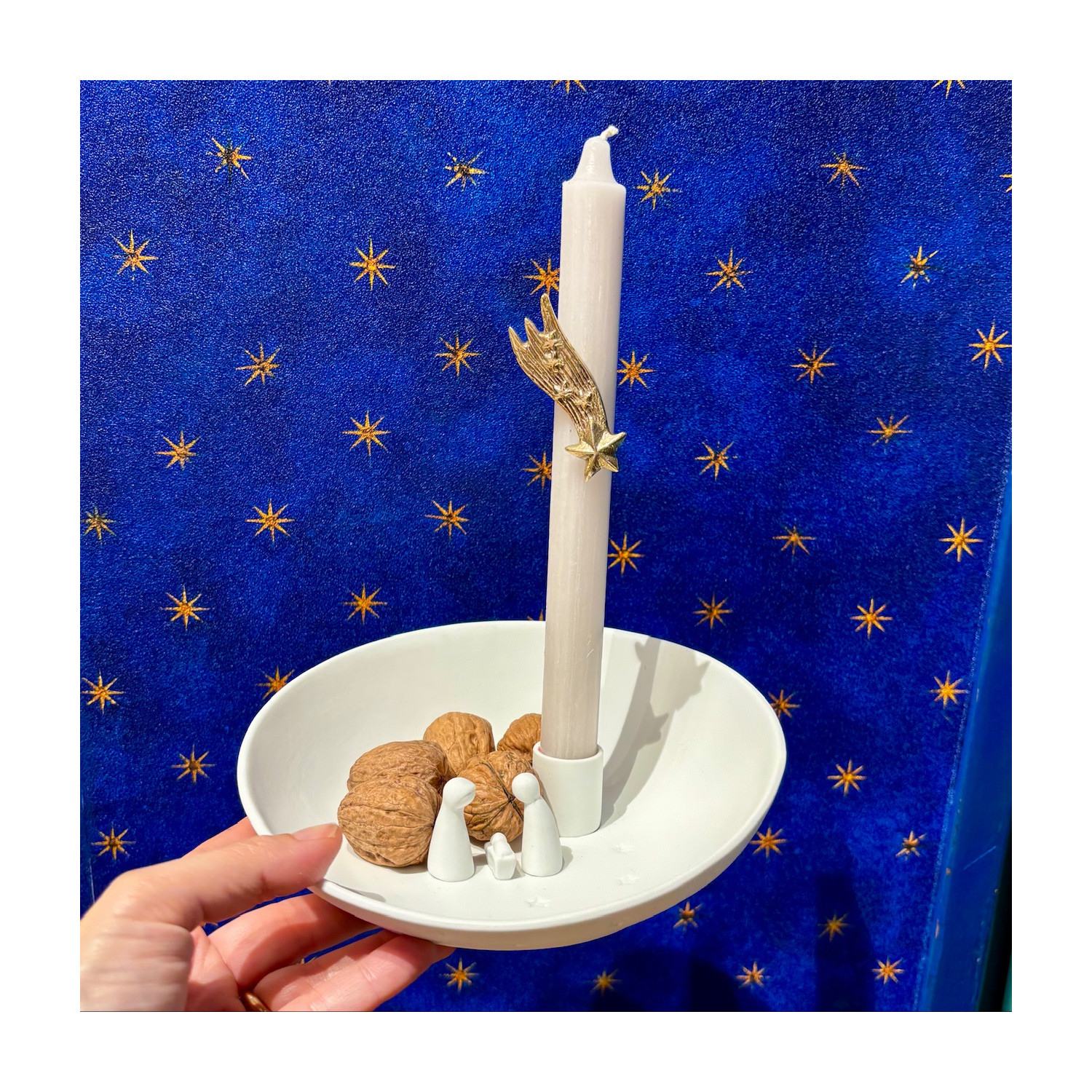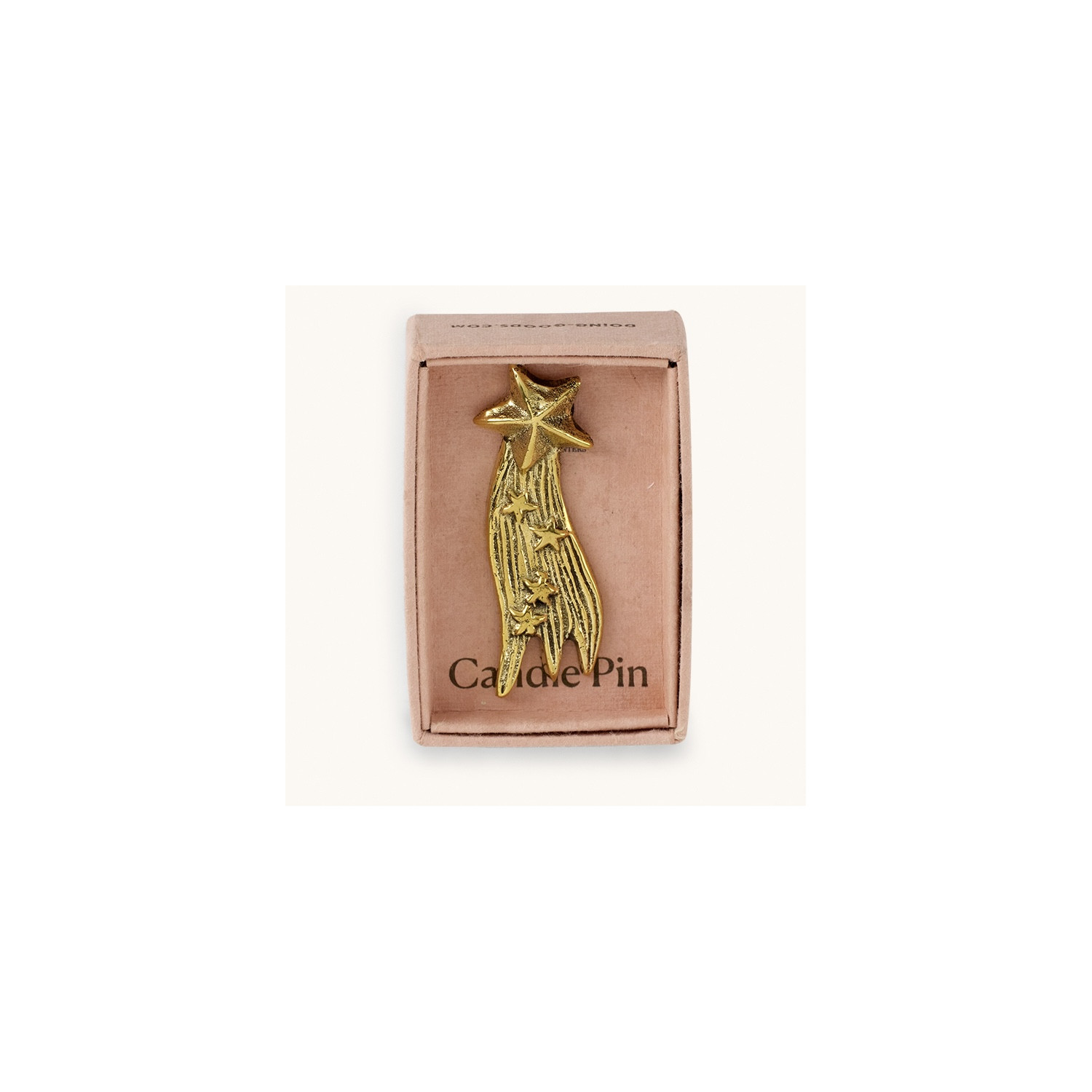 Brass comet star with pin, to be applied to candles, can be used as a brooch, can be applied anywhere.