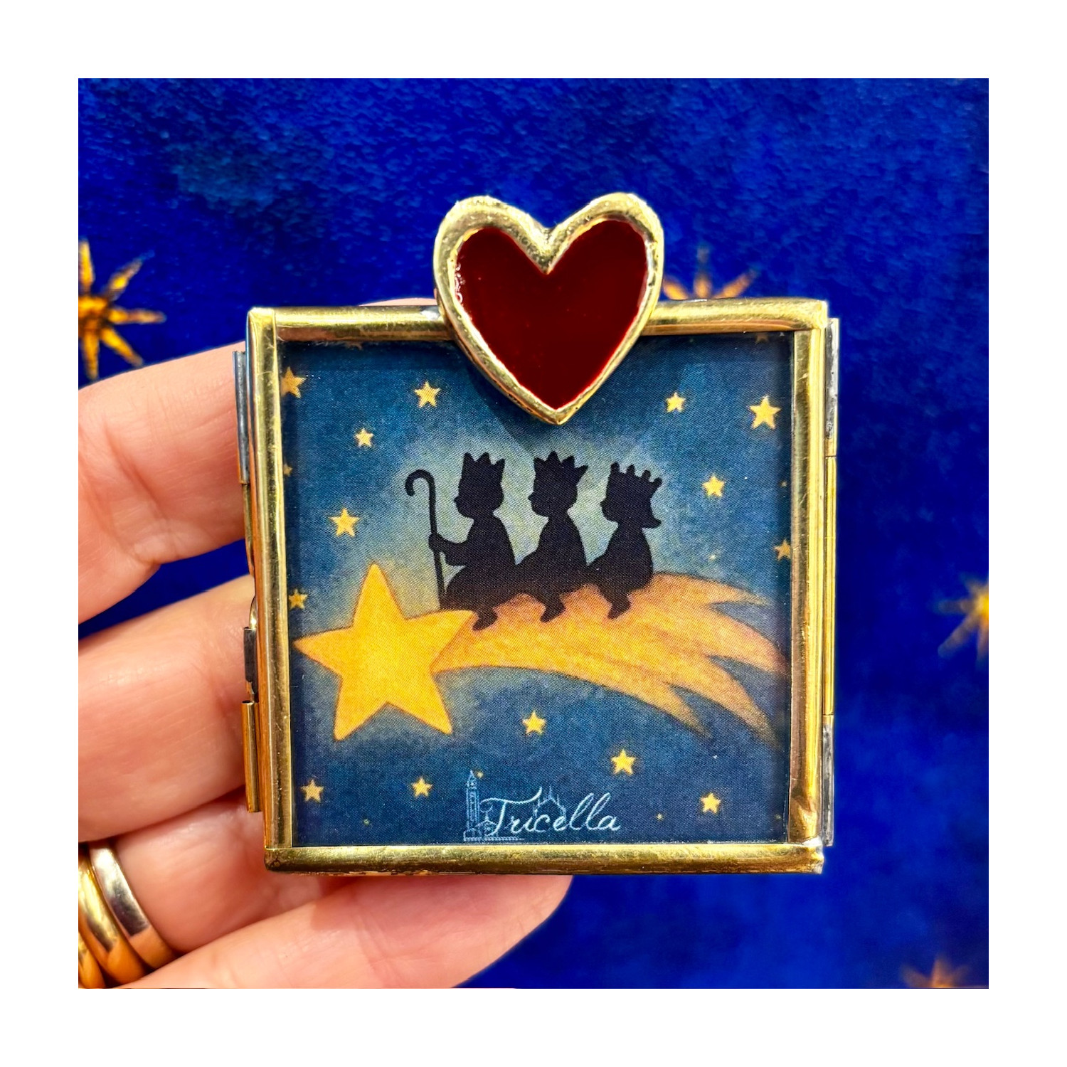 Small frame with illustration of the Three Wise Men and the Comet Star, quote on the back.
