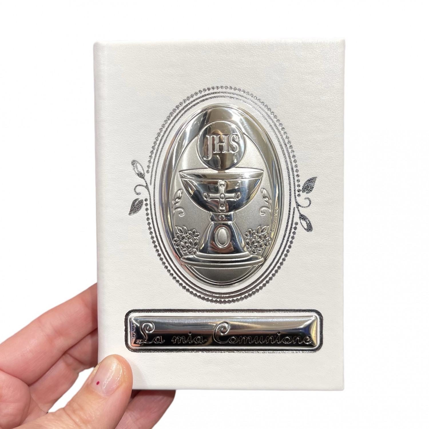 Gospel and Acts of the Apostles with white leather cover and silver plaque