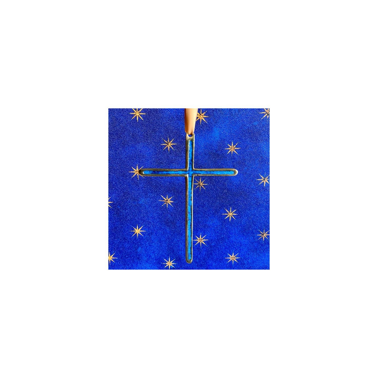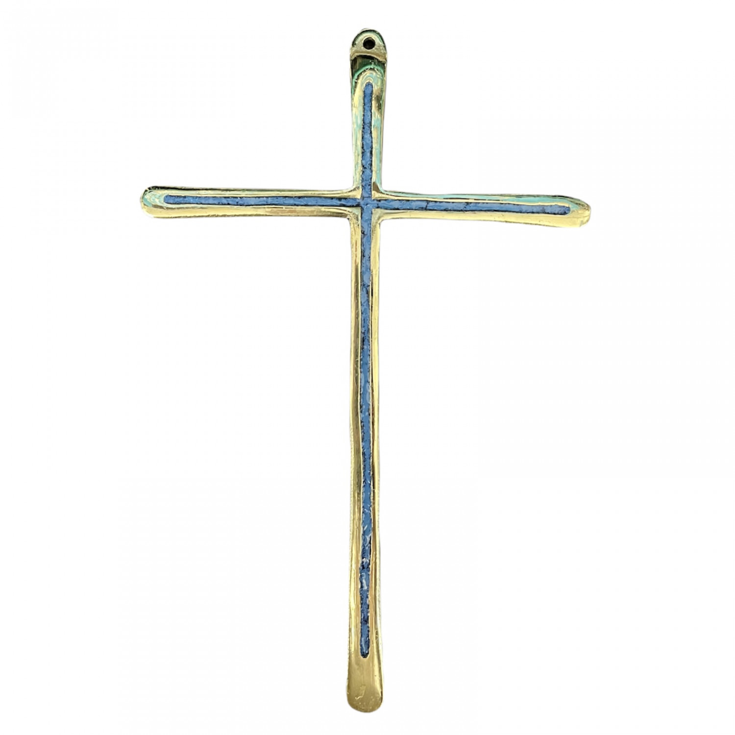 Bronze cross, blue fire enamel.