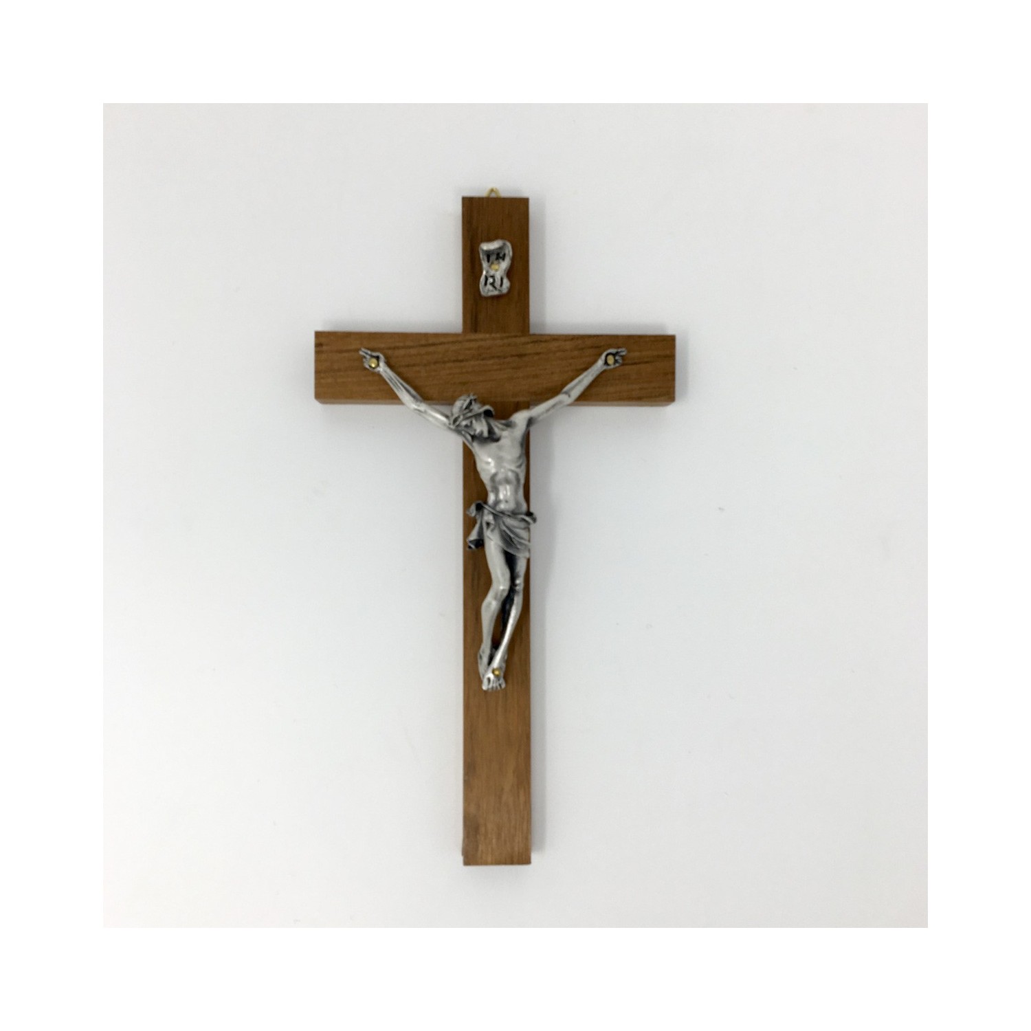 Crucifix in walnut with body in silver metal, made in Italy, to hang.
