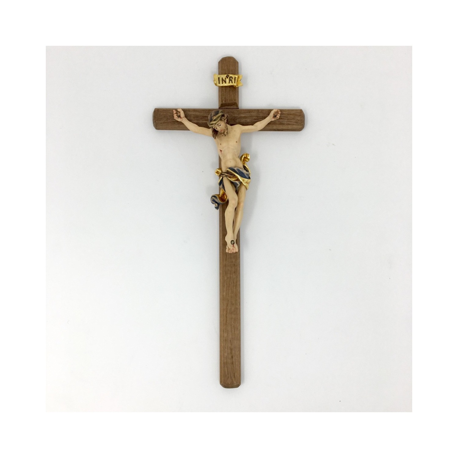 Crucifix in wood carved and hand painted by the master sculptors in Val Gardena. Painted with oil colors, to hang.