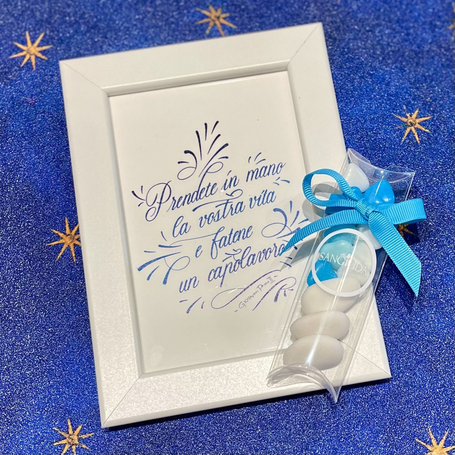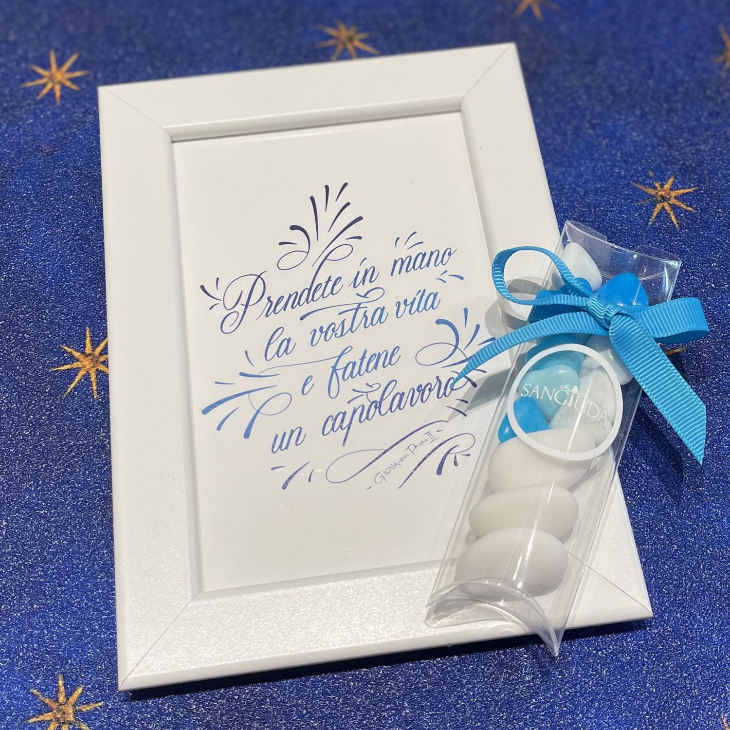 Favor box with print "Take hold of your life and make it a masterpiece"