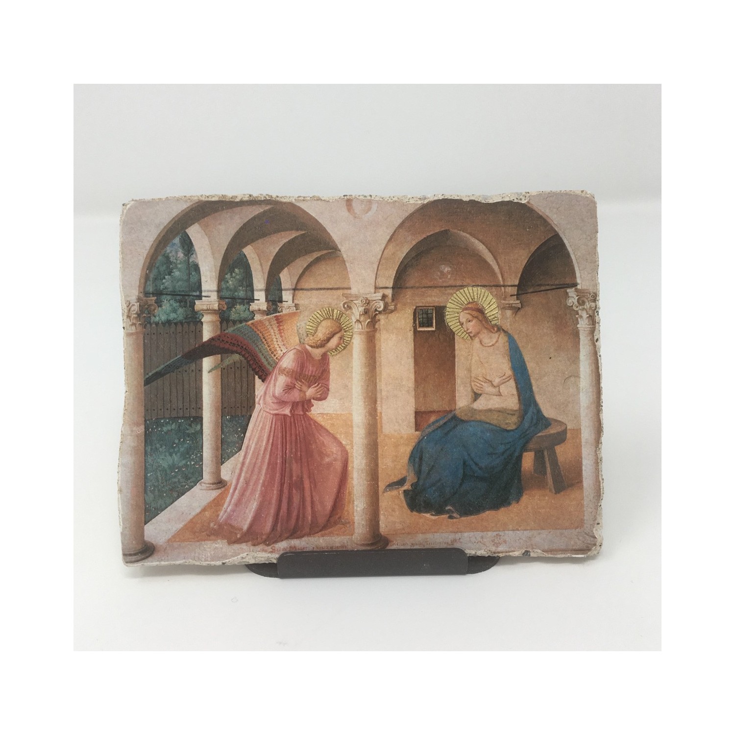 Fresco on lime made with the pictographic technique, designed to be hung, also includes a support to be able to support it. Reproduction of the Annunciation by Beato Angelico - Cortona -