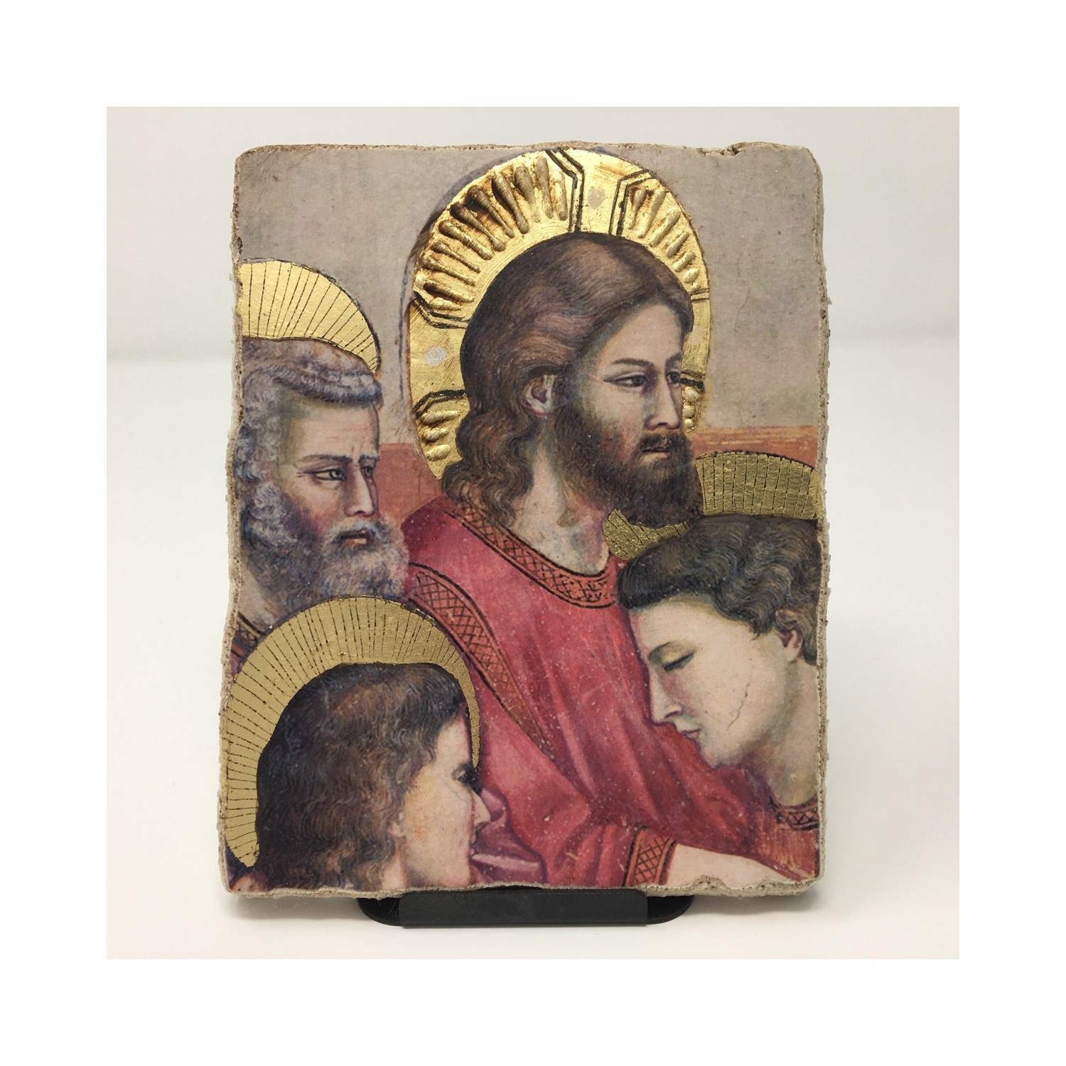 Fresco on lime made with the pictography technique, designed to be hung, also includes a support to support it. Reproduction of the detail of Giotto's Last Supper - Scrovegni Chapel. The embrace between Jesus and Matthew is a subject that we recommend for children who are preparing to receive the sacrament of Confirmation or First Communion, it is the wish for everyone to be able to abandon themselves in His arms, just like Matthew in this detail of Giotto's Last Supper.