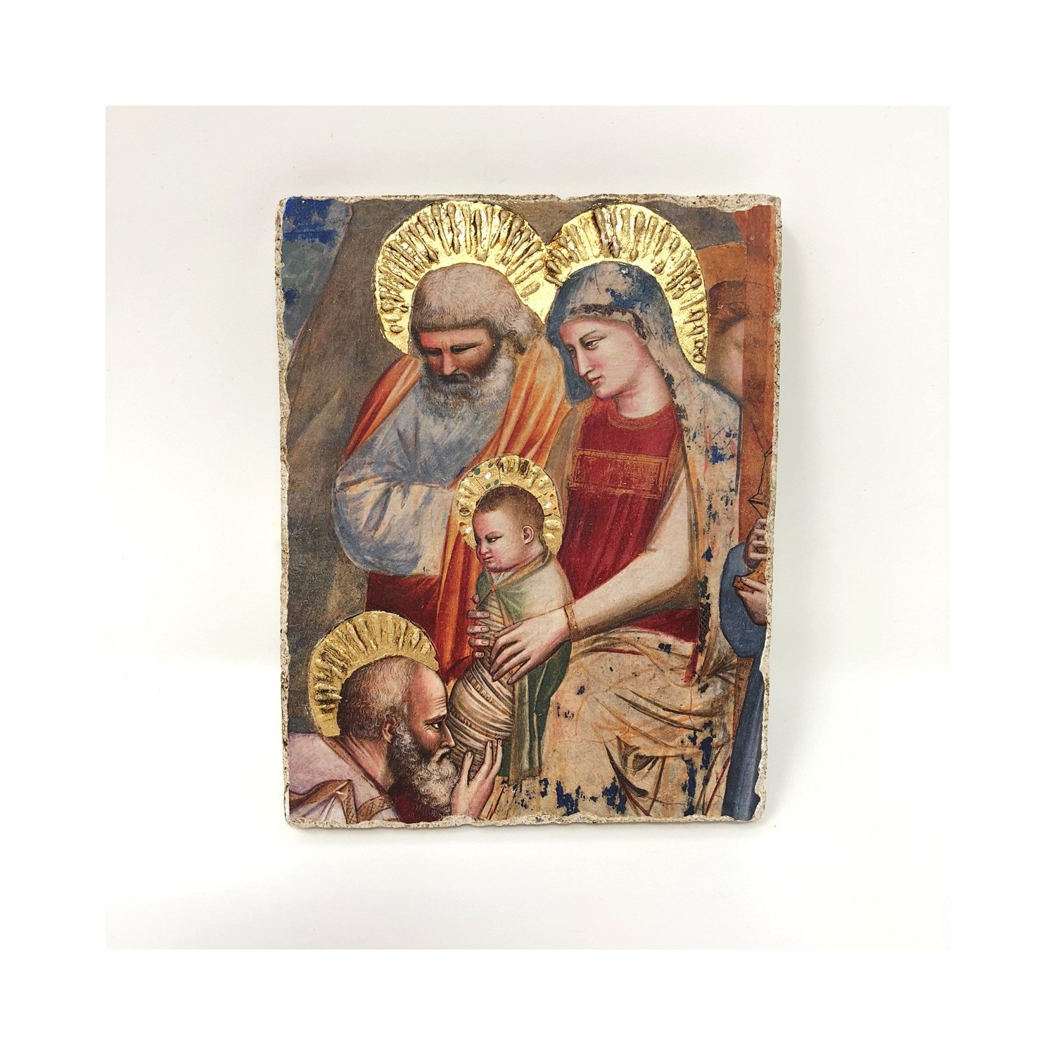 Fresco on lime made with the pictographic technique, designed to be hung, also includes a support to be able to support it. Reproduction of the detail of Giotto adoration of the Magi - Scrovegni Chapel -