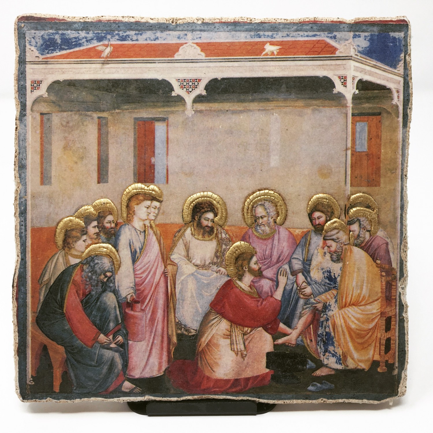 Fresco on lime made with the pictographic technique, designed to be hung, also includes a support to be able to support it. Reproduction of the detail of Giotto Washing of the feet - Scrovegni Chapel -