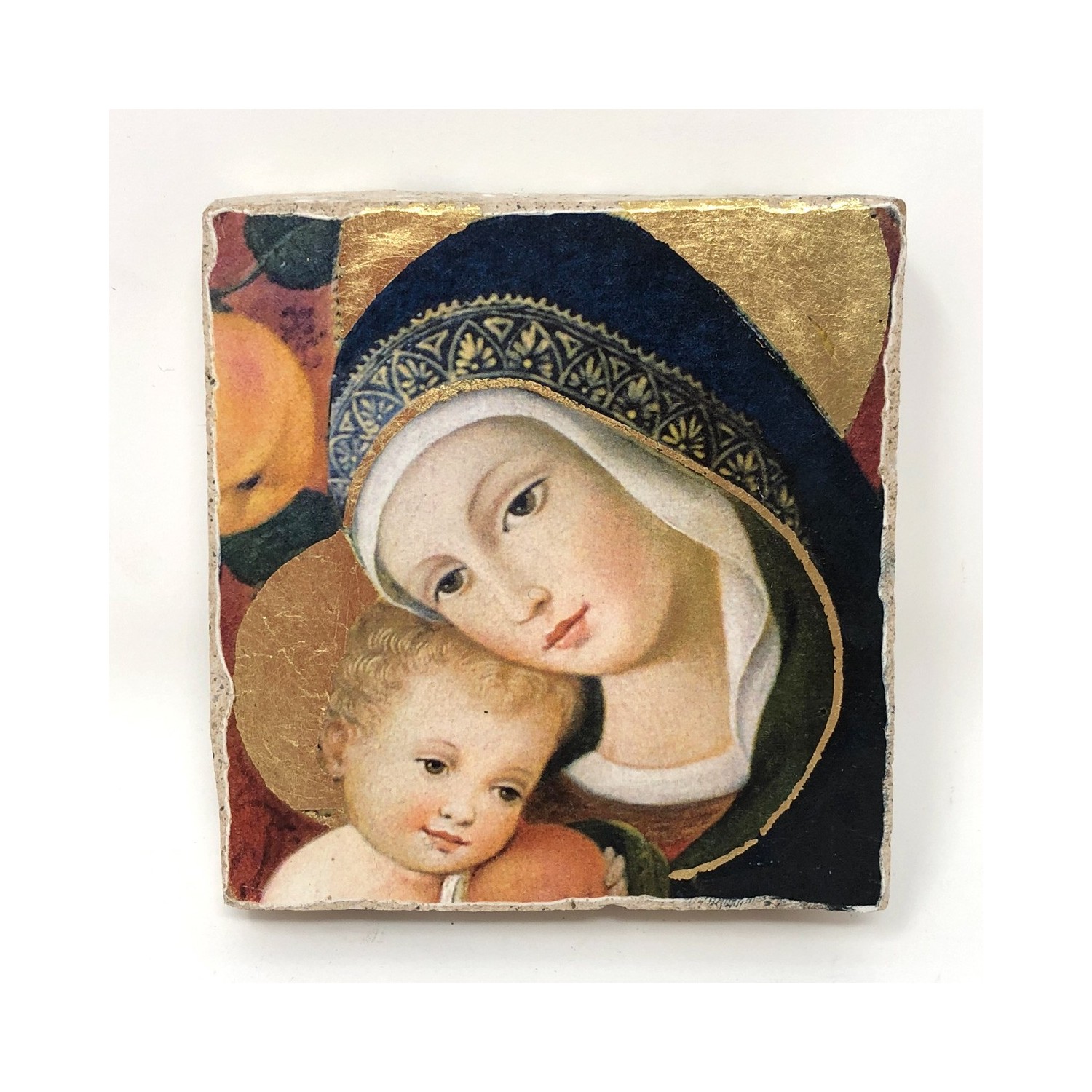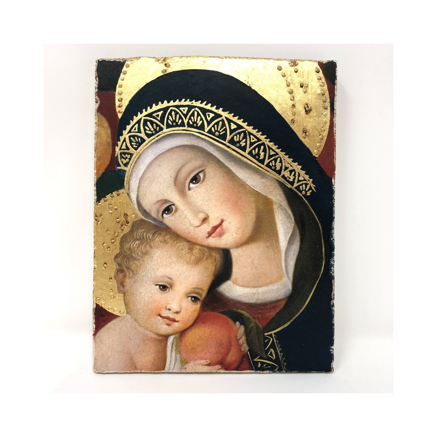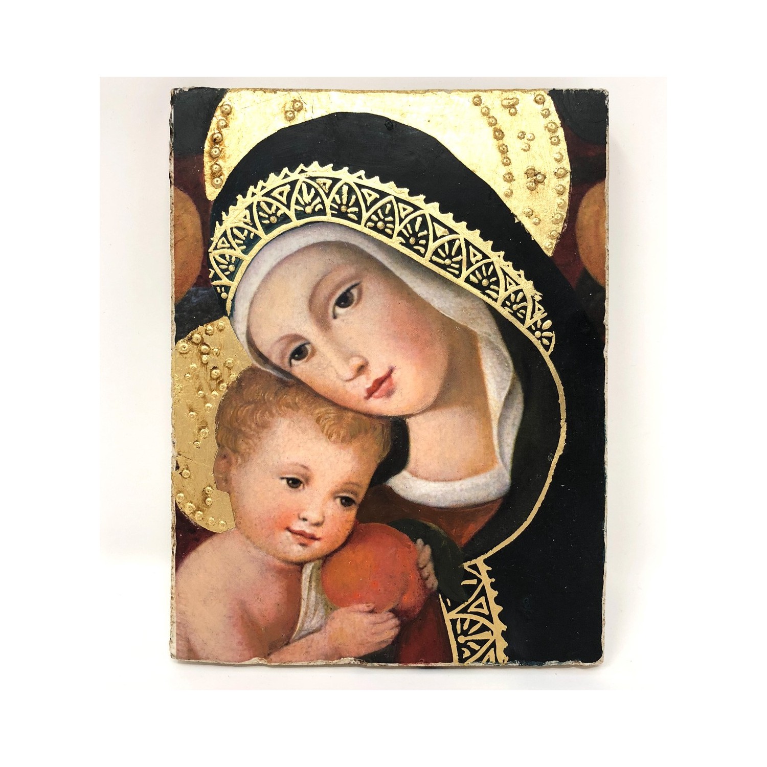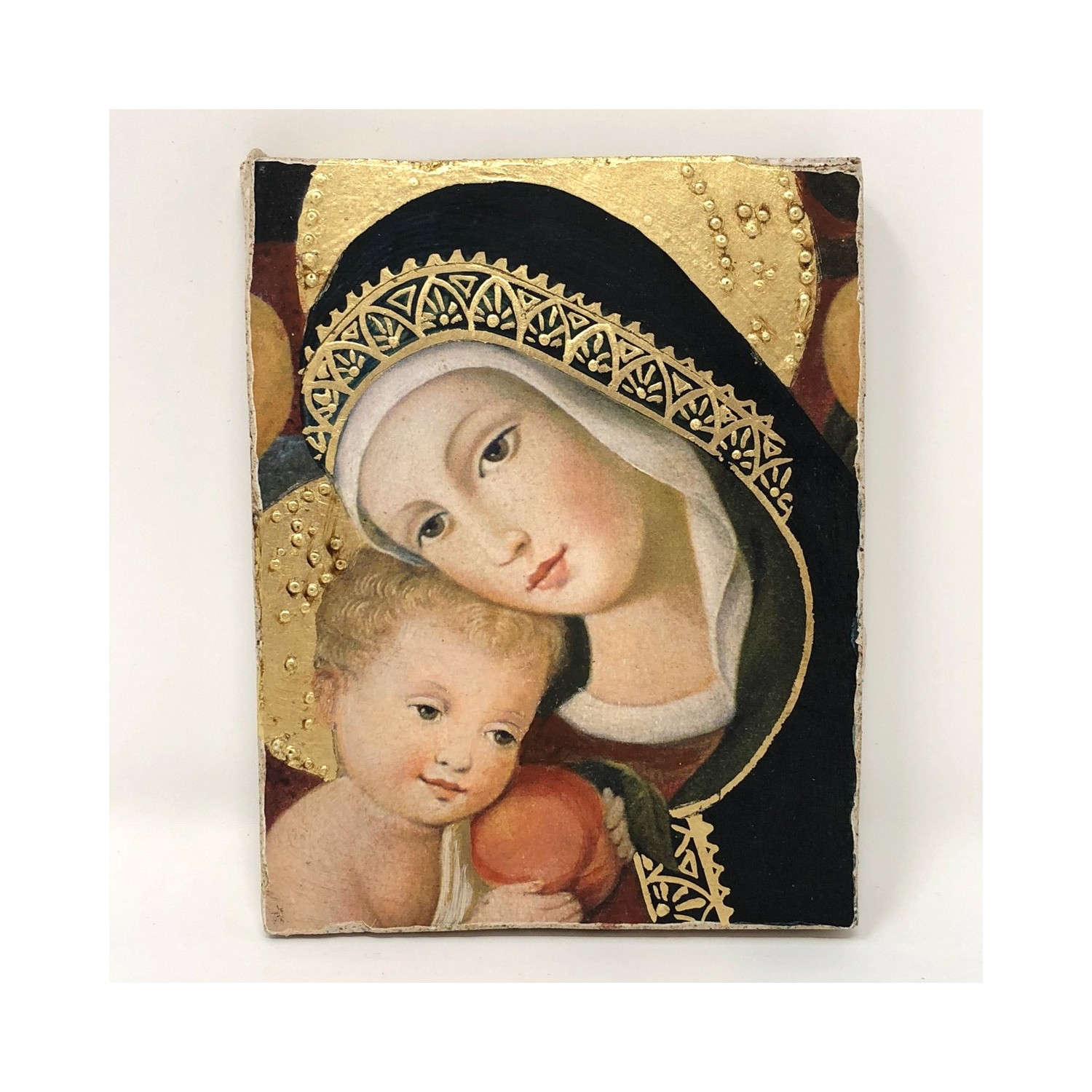 Fresco on lime made with the pictographic technique, designed to be hung, also includes a support to be able to support it. Reproduction of Madonna with Child by Carlo Crivelli - private collection -
