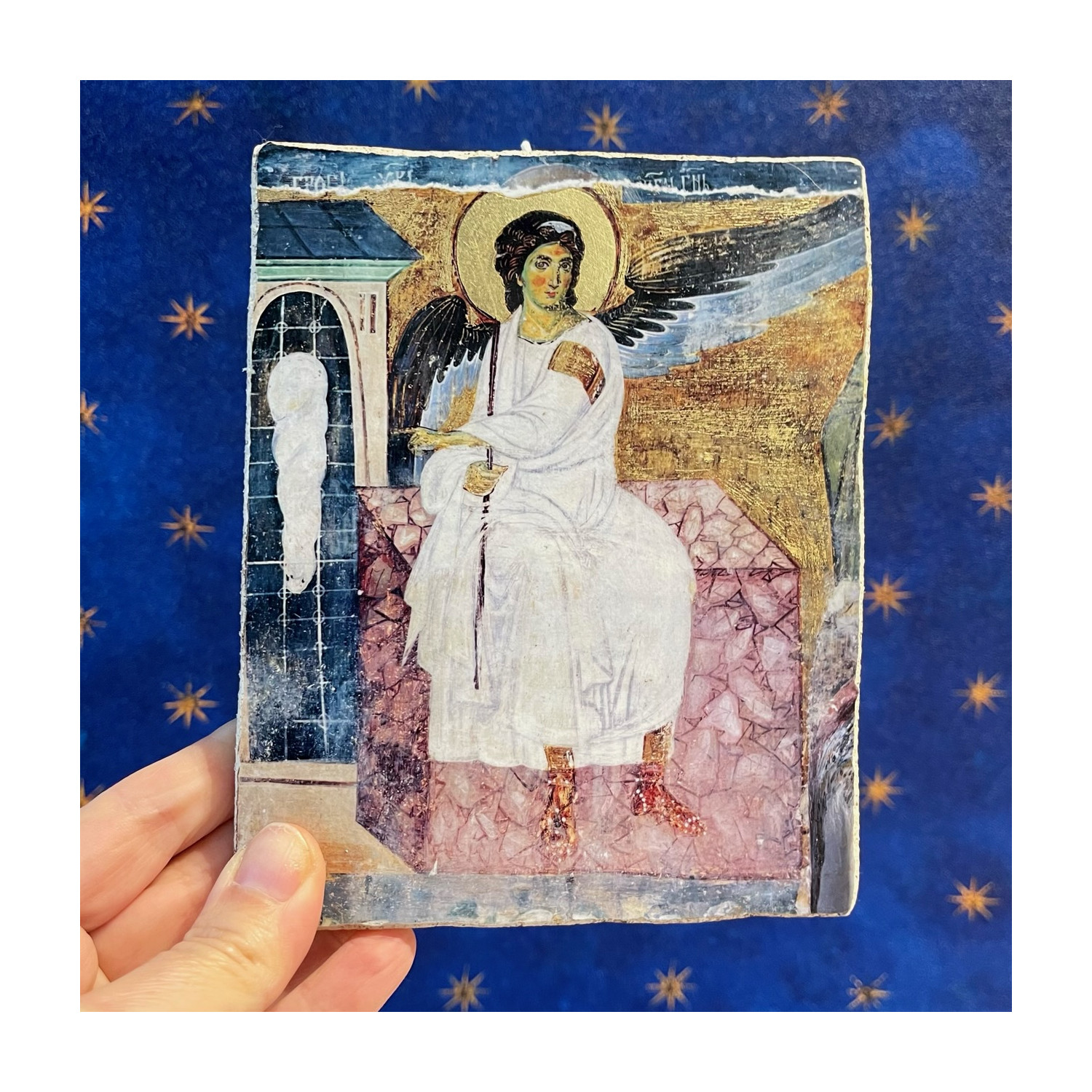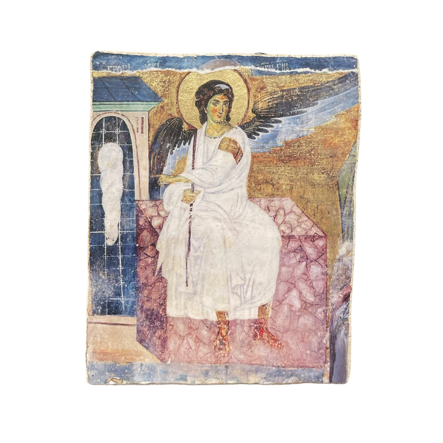 Fresco on lime produced with the technique of pictography, Angel of the resurrection.