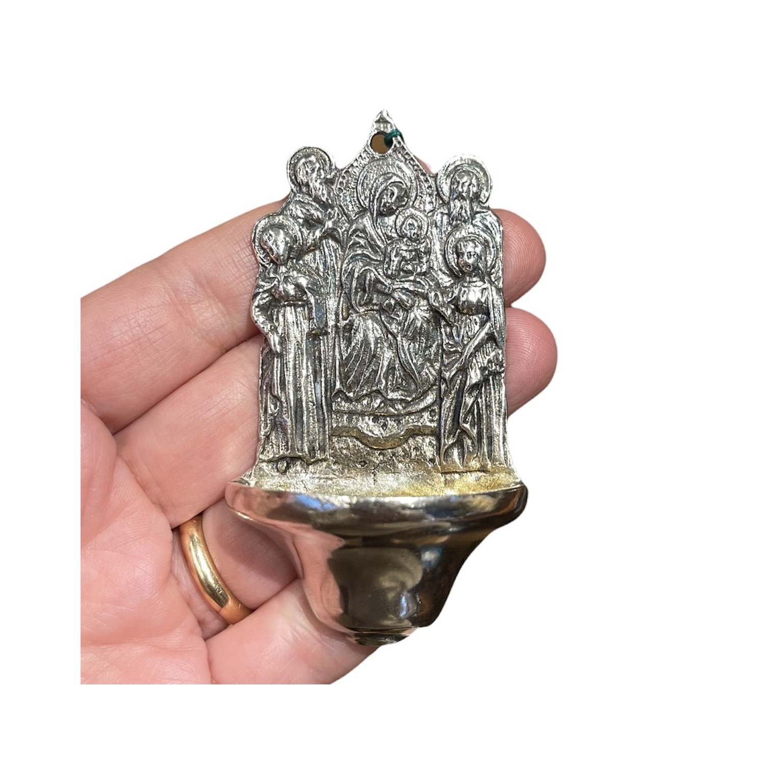 Holy water font in silver Madonna and Child