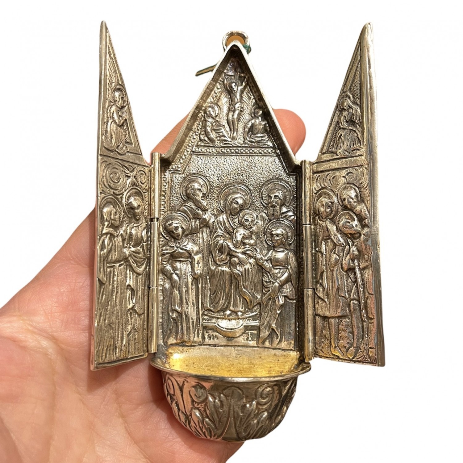 Holy water stoup in 800 silver triptych.