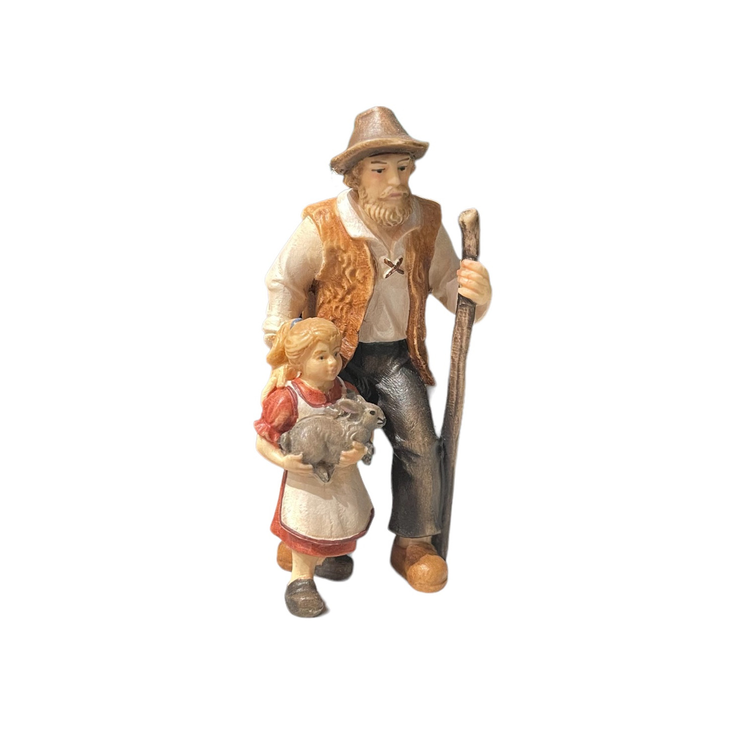 Grandfather with granddaughter. Nativity scene in carved and painted maple wood