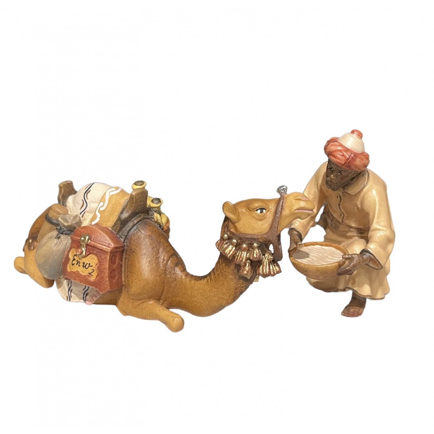Camel lying down with camel driver Carved and painted maple wood Nativity Scene