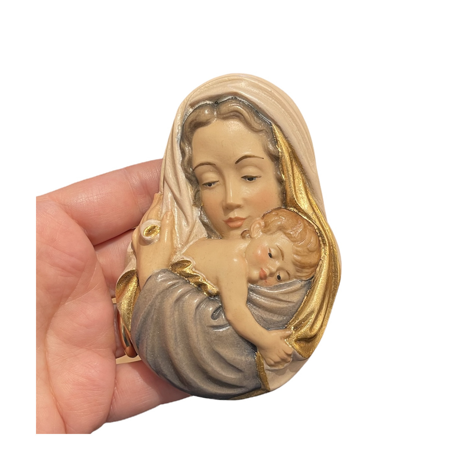 Natural maple wood statue hand carved by the sculptors of Val Gardena