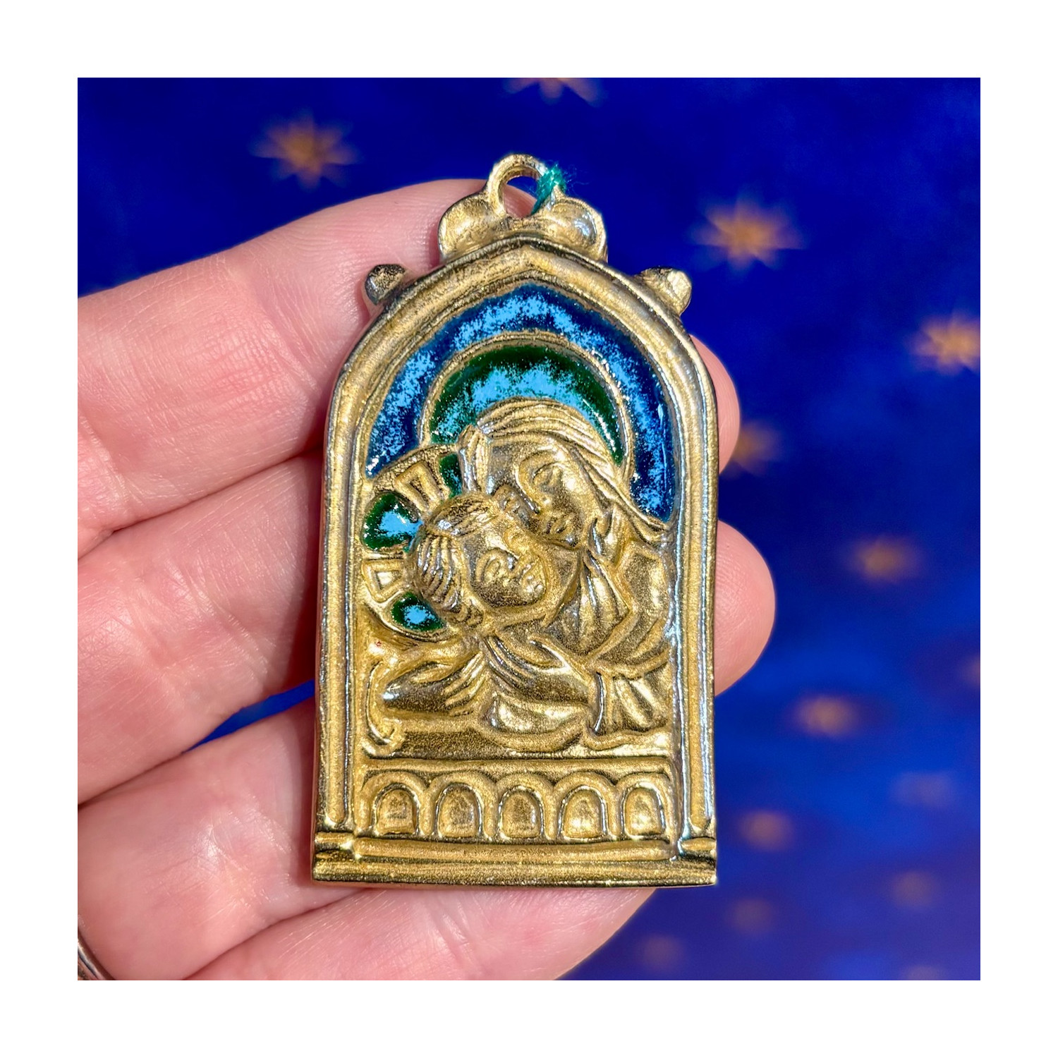 Madonna and Child plaque in enamelled bronze.