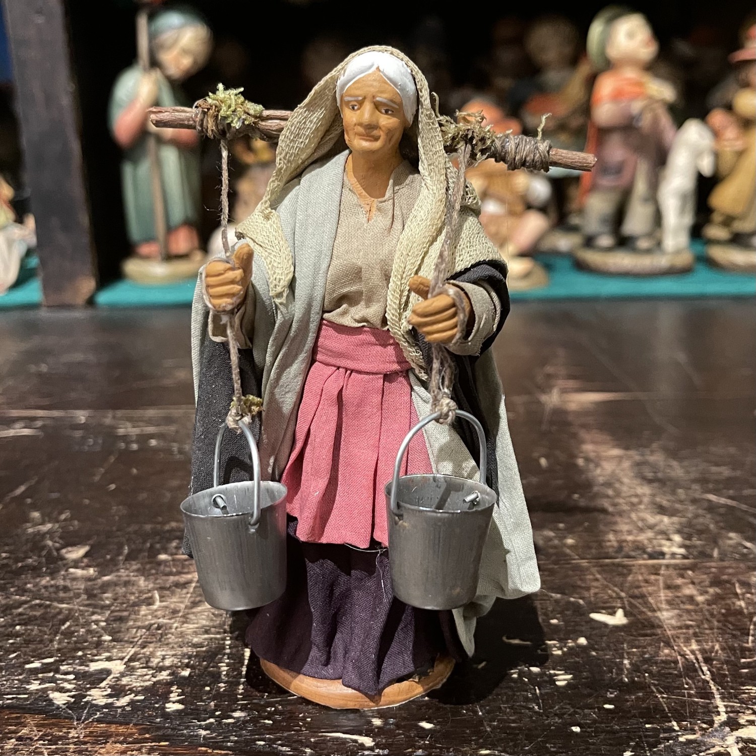 Neapolitan crib in terracotta with clothing, scale 13 cm.