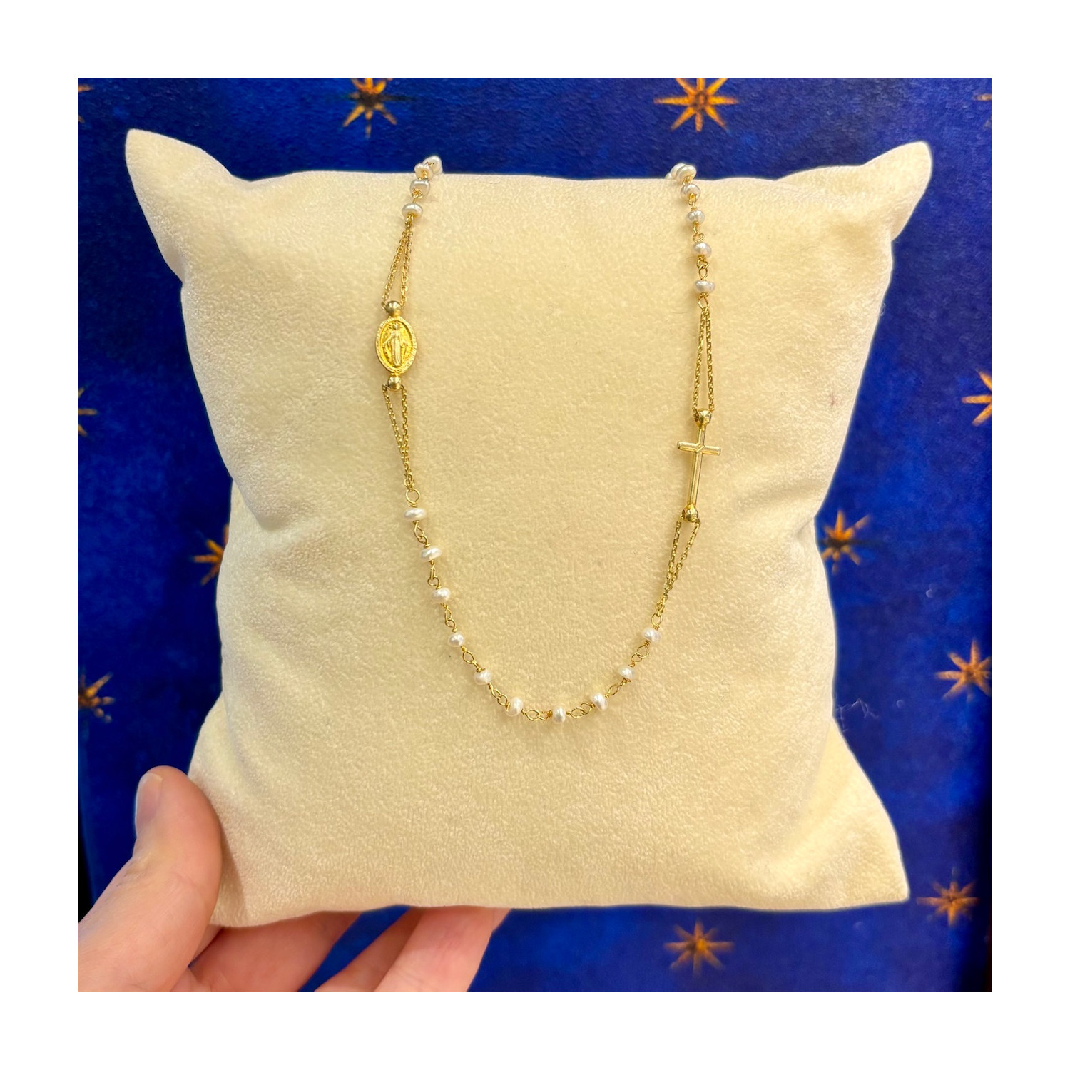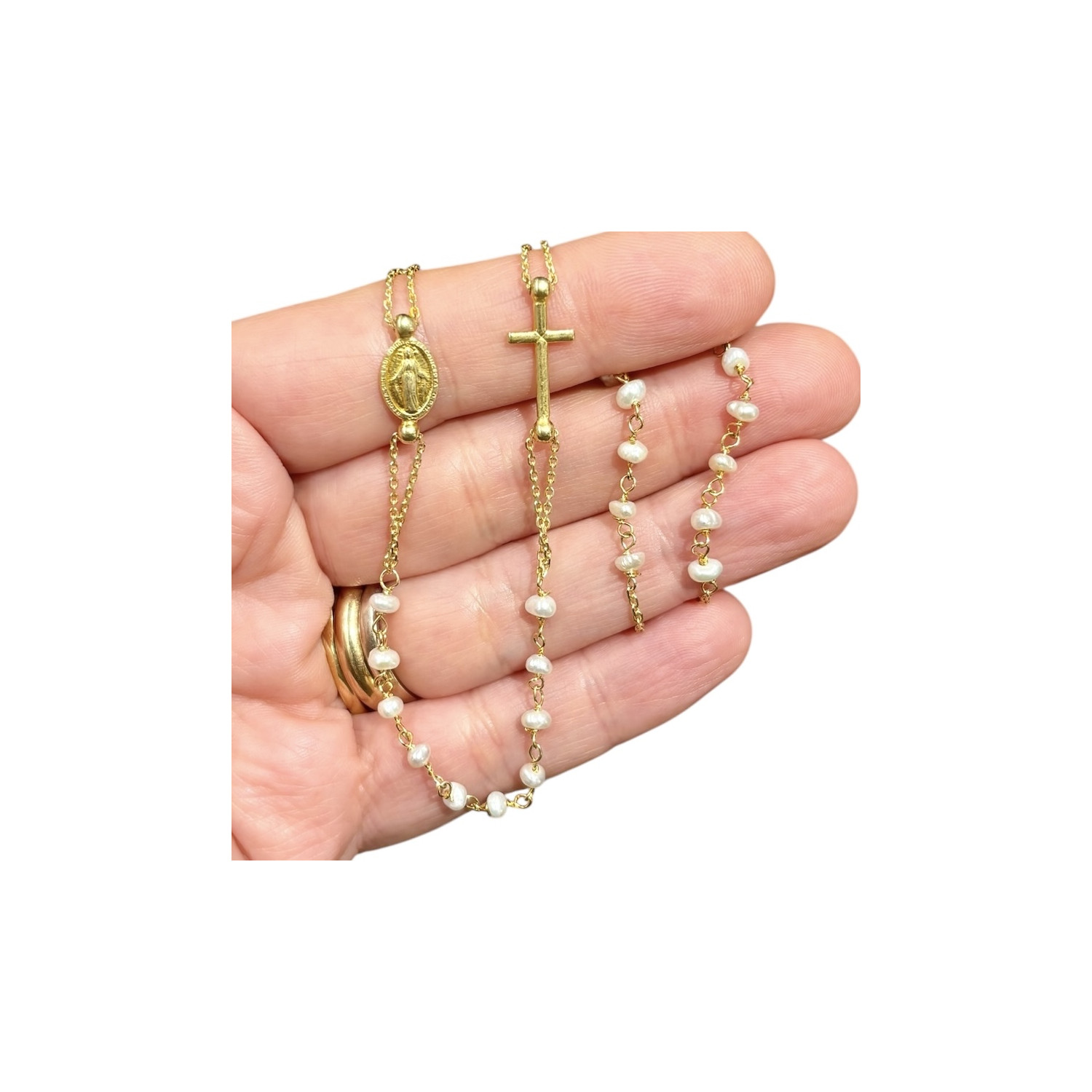 Gold-plated silver rosary necklace with pearls