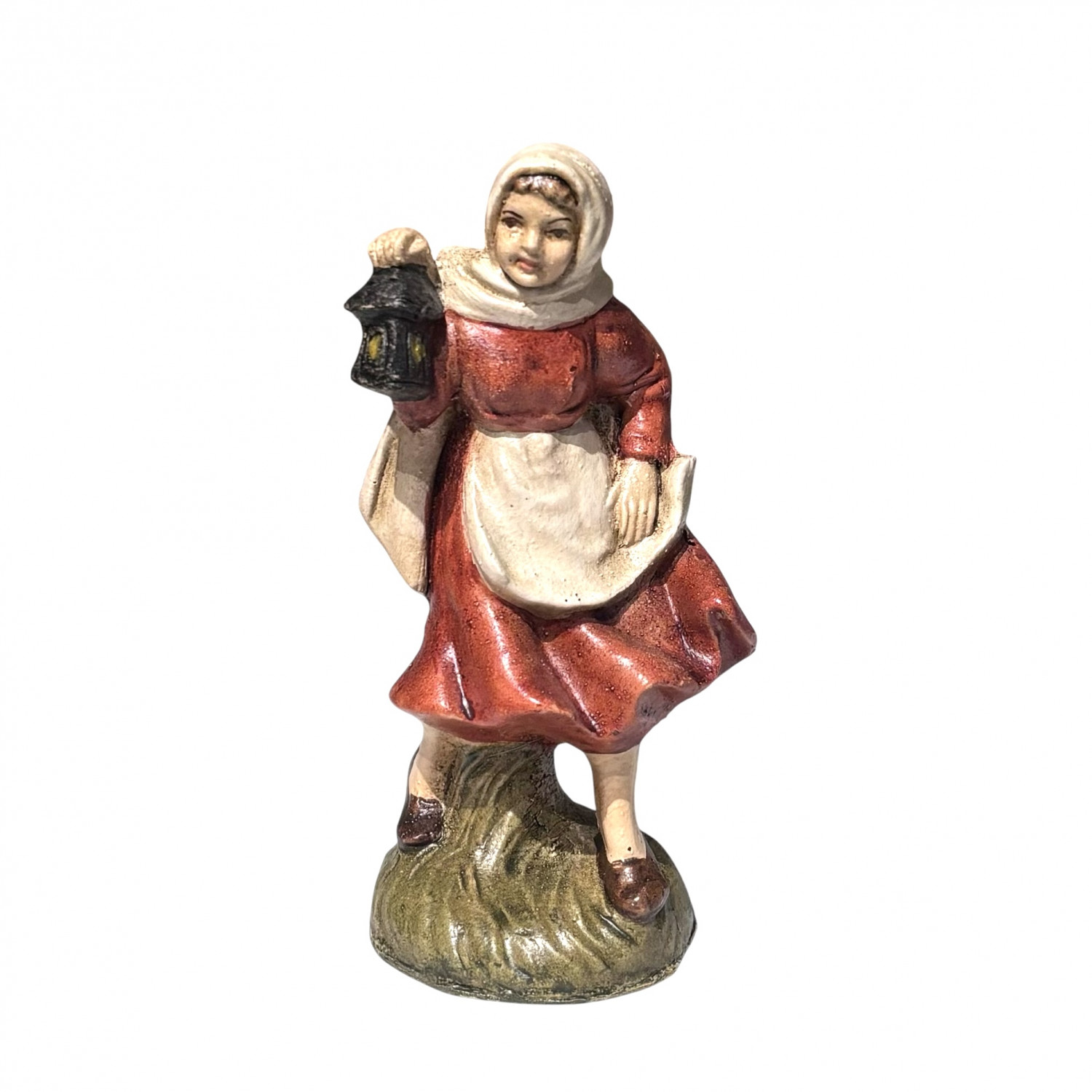 Woman with lantern, traditional nativity scene in hand-painted papier-mâché, 10 cm scale.