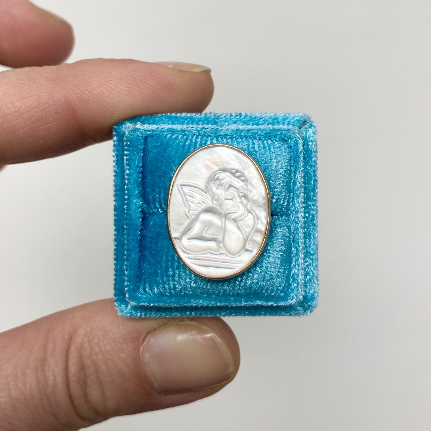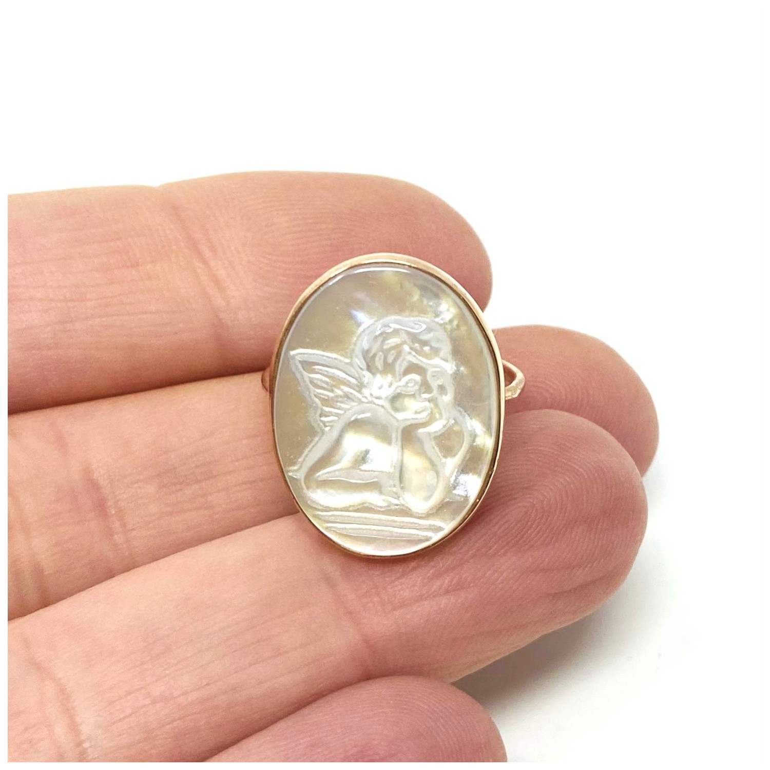 Ring in 925 silver, rose gold bath and natural mother-of-pearl angel.