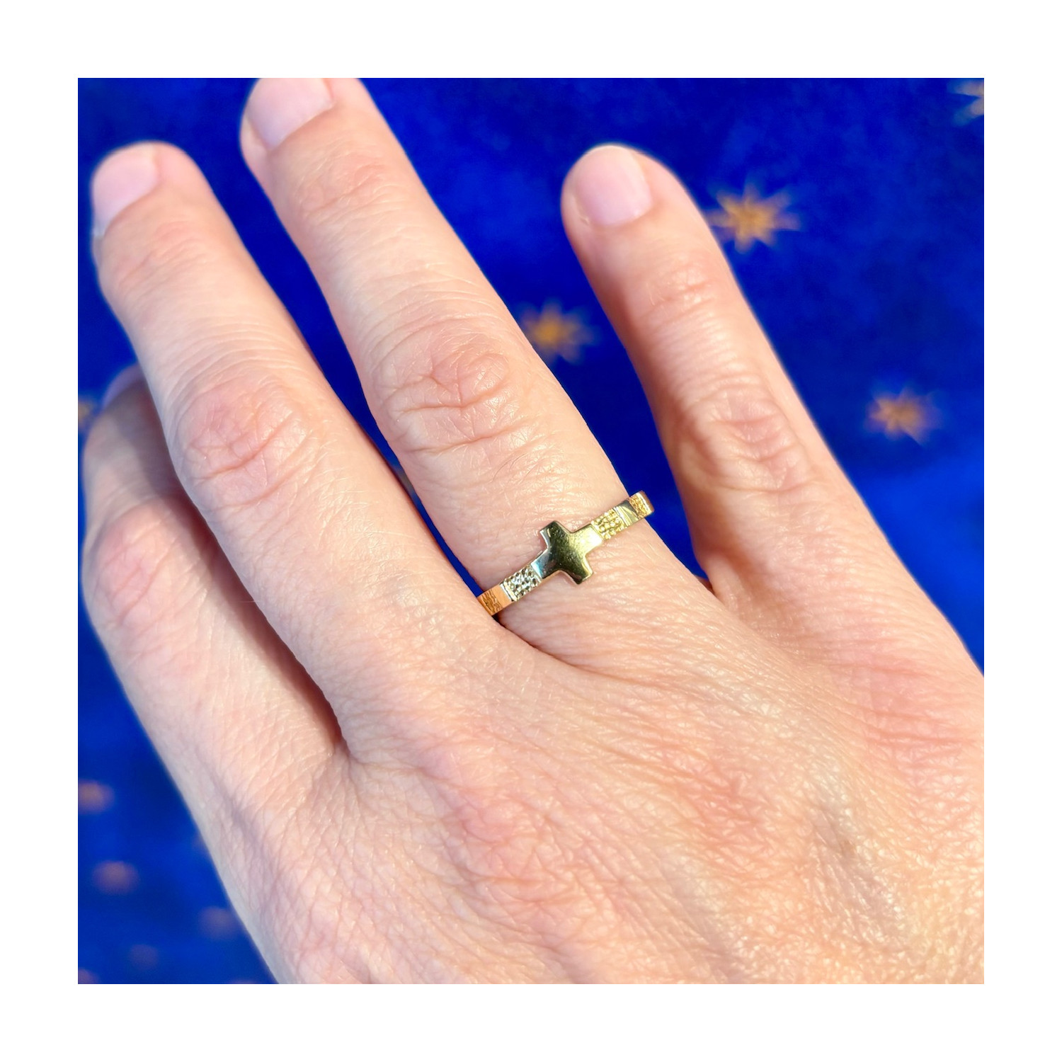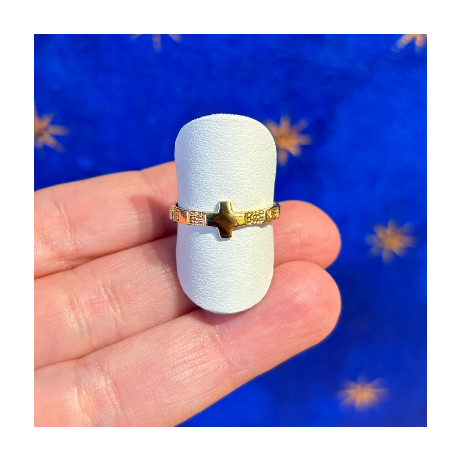 18K gold rosary ring, solid, band model.