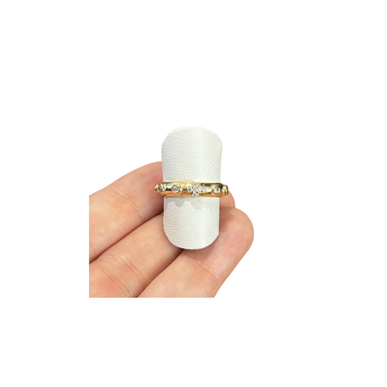 Rosary ring with zirconia decade and cross with embedded zirconia, in gold-plated 925 silver.