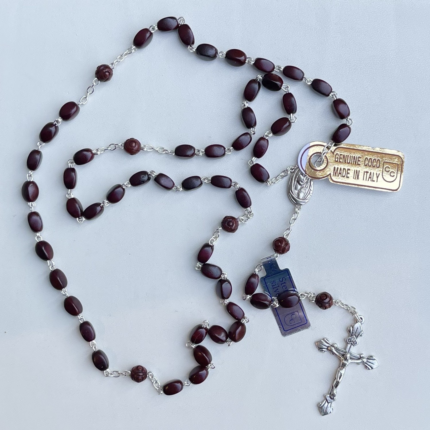 Rosary in silver and coconut wood beads