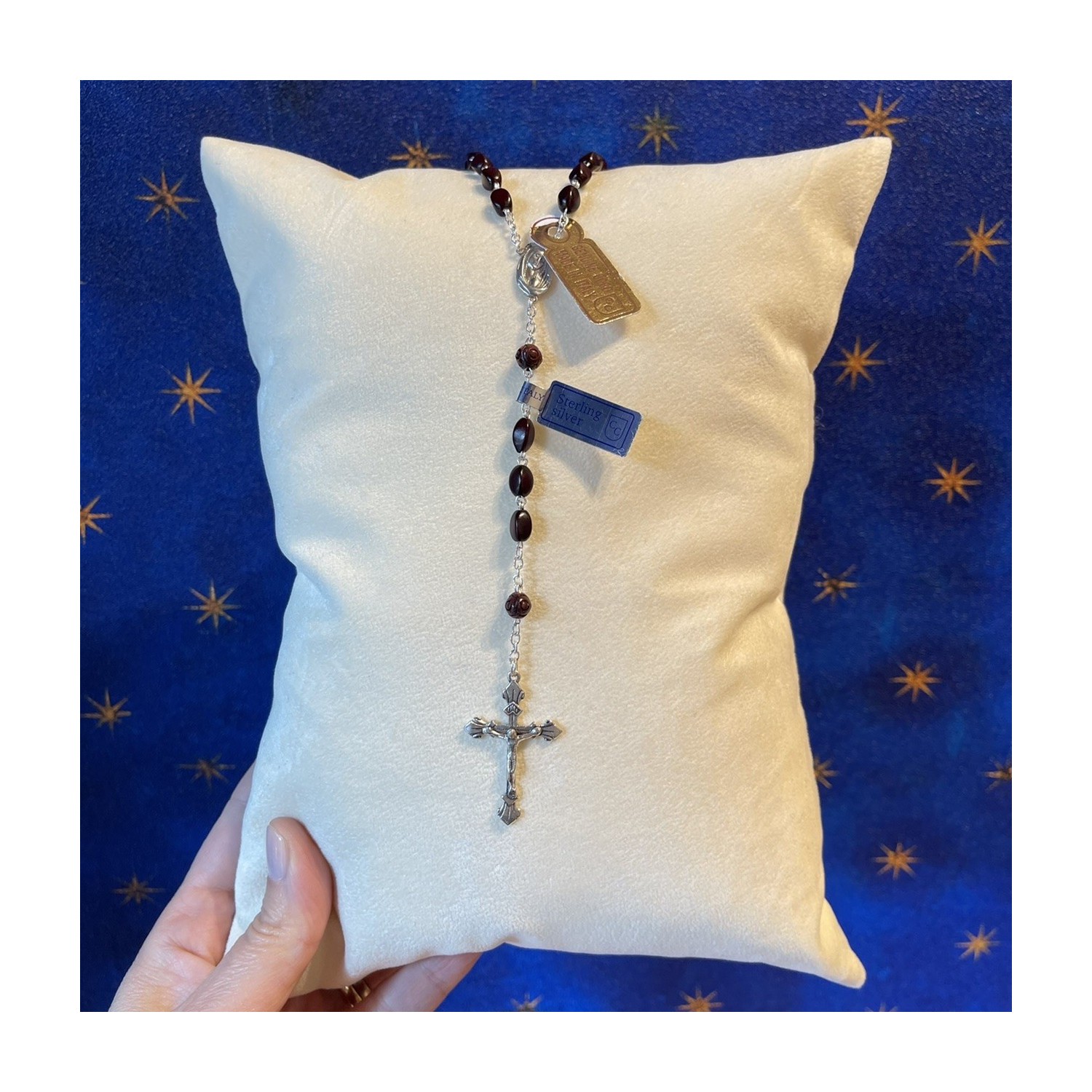 Rosary in silver 925 and coconut wood beads.