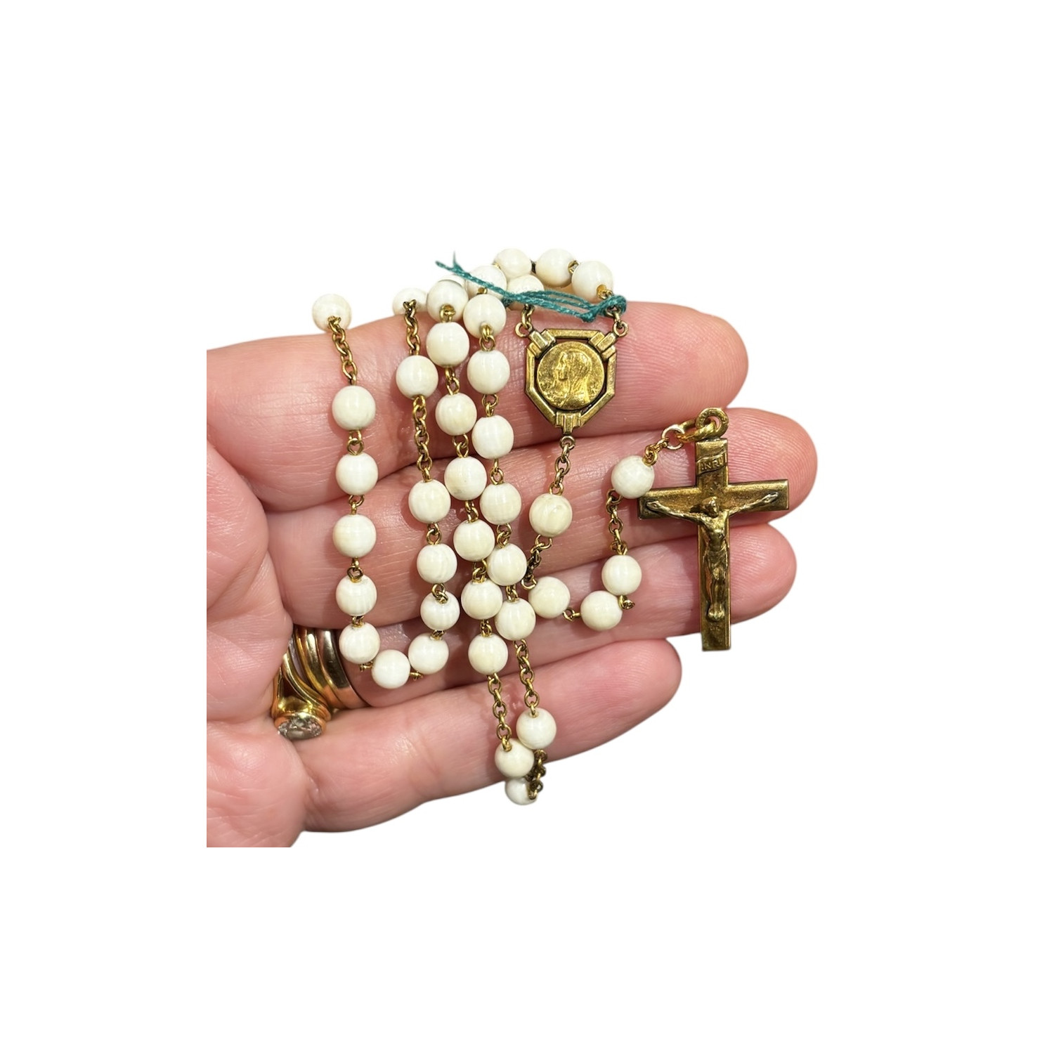 Rosario in argento dorato e avorio