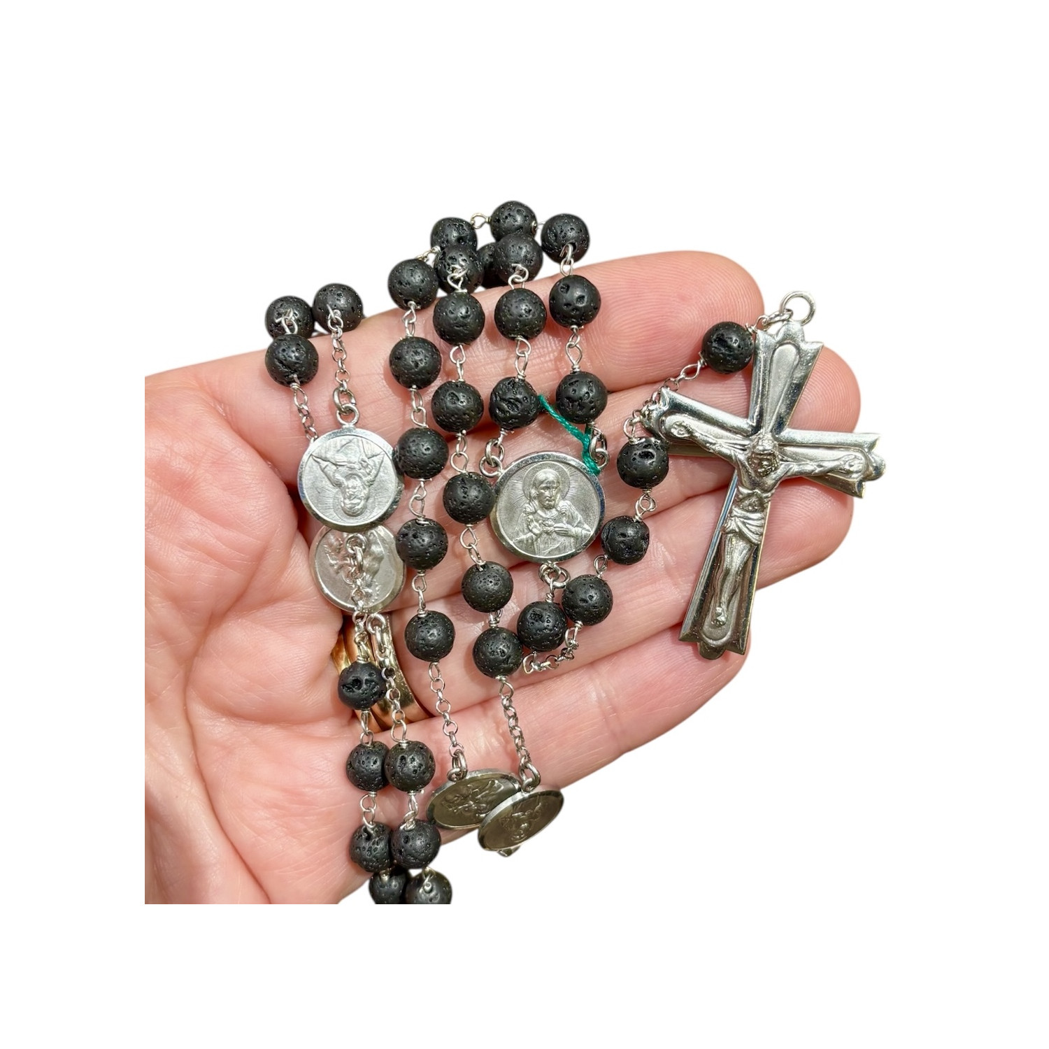 Rosario scapolare in argento e pietra lavica
