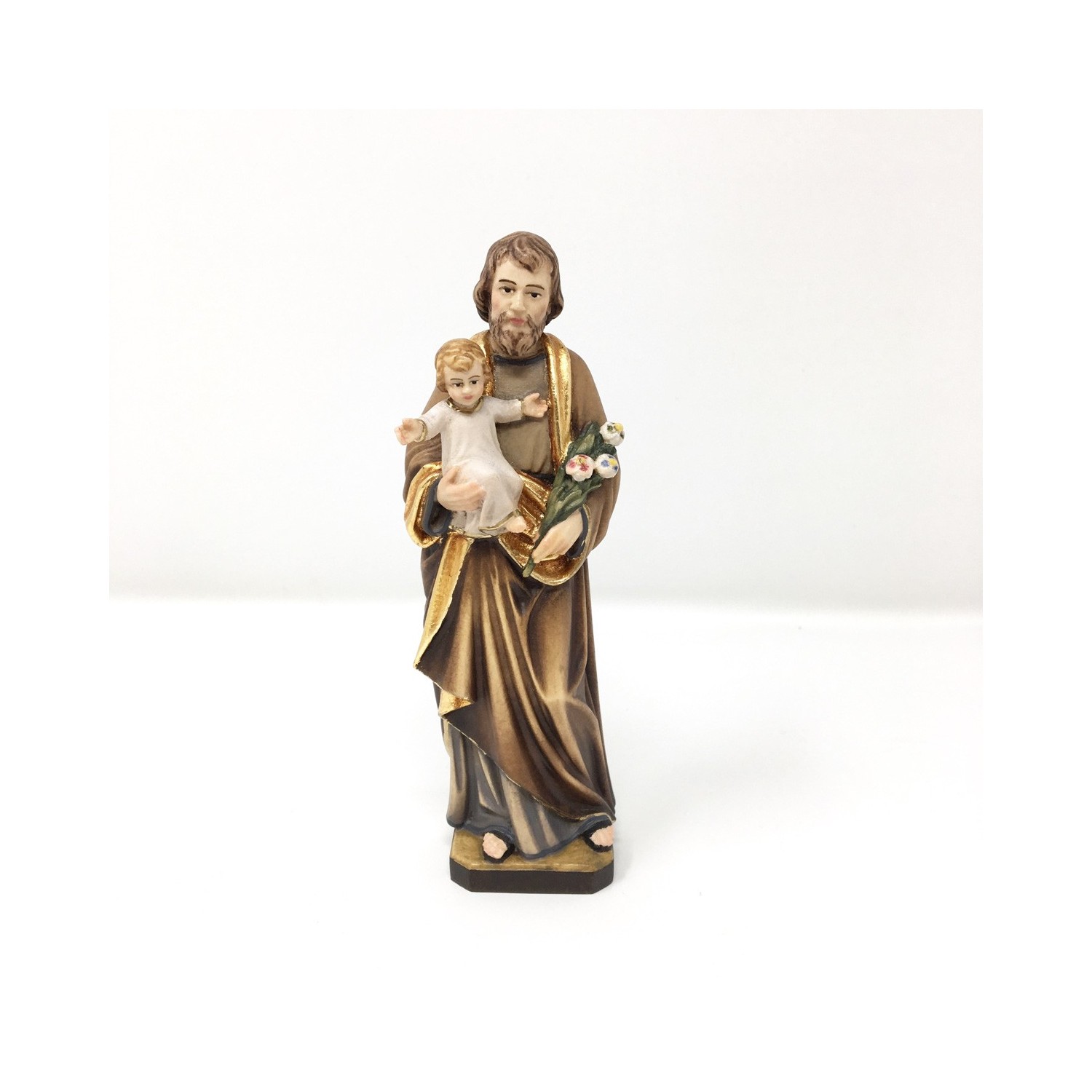 Statuette of Saint Joseph in wood cm 15, in wood carved and painted with oil colors by the master sculptors of Val Gardena.