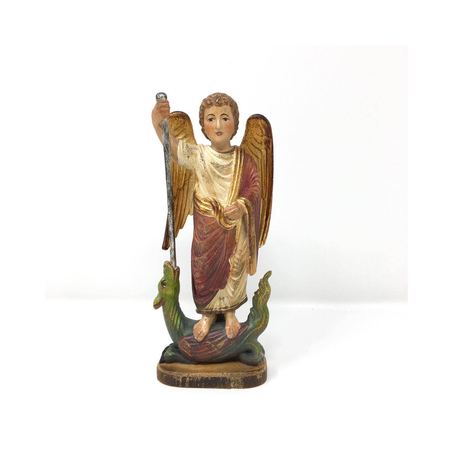 Saint Michael Romanesque wooden statue 20 cm