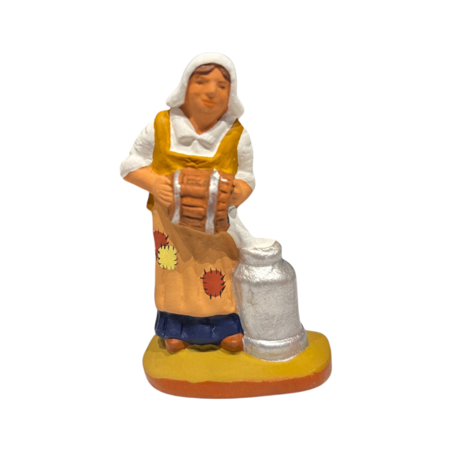 Woman with umbrella and Santons basket 6 cm, Provençal nativity scene.