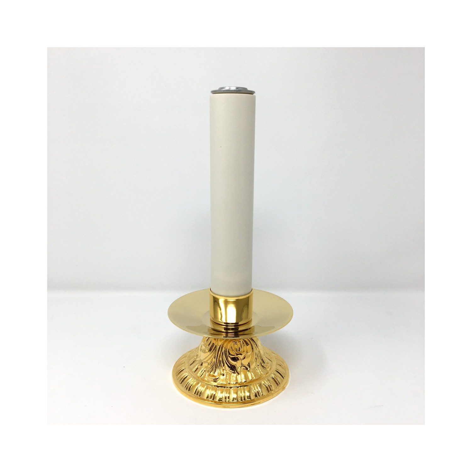 Gilded brass candlestick with worked pedestal. Candles suitable for this candlestick measure 4 cm in diameter. the cost does not include candles.