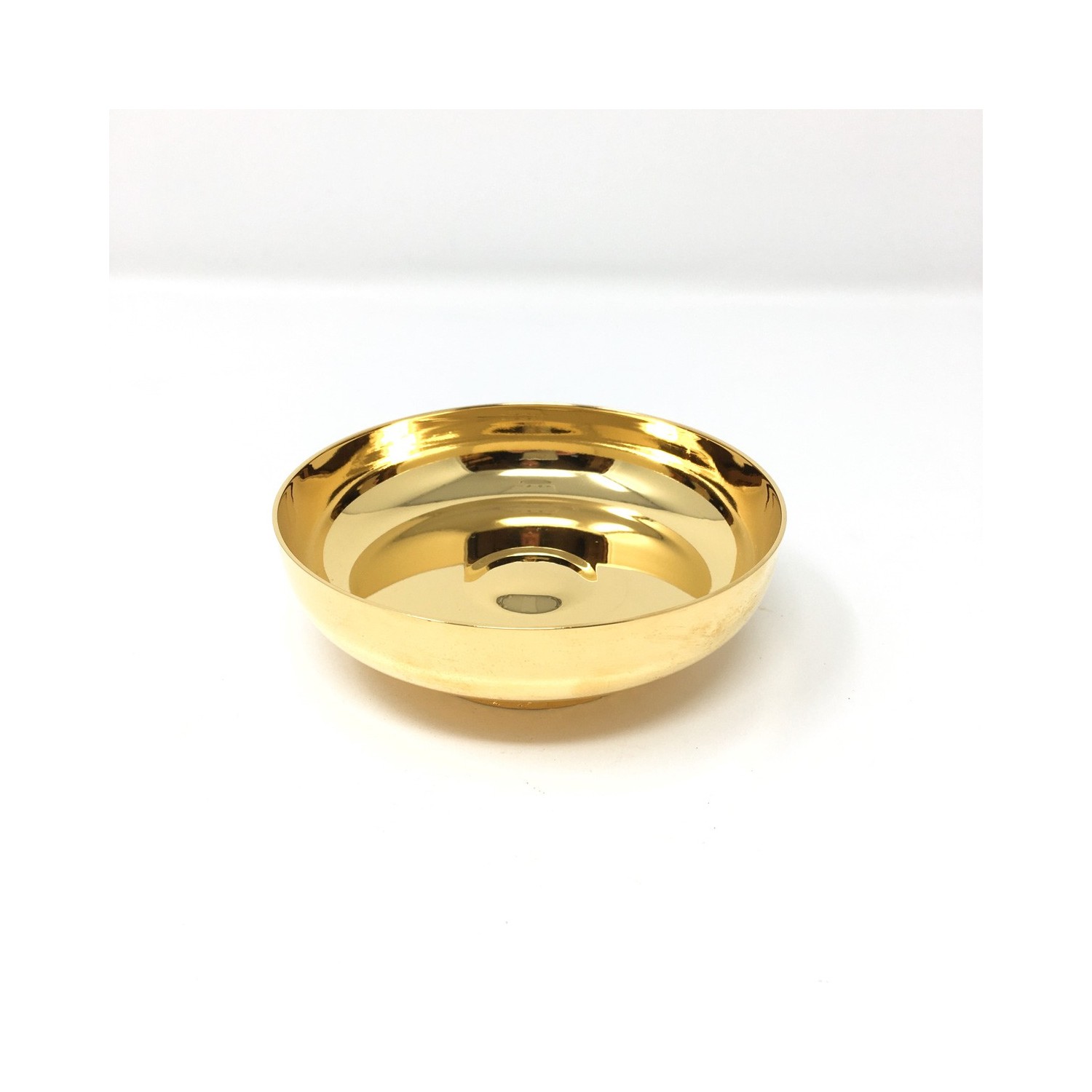 Offertory paten in gilded brass with cast pedestal. Diameter cm 10.