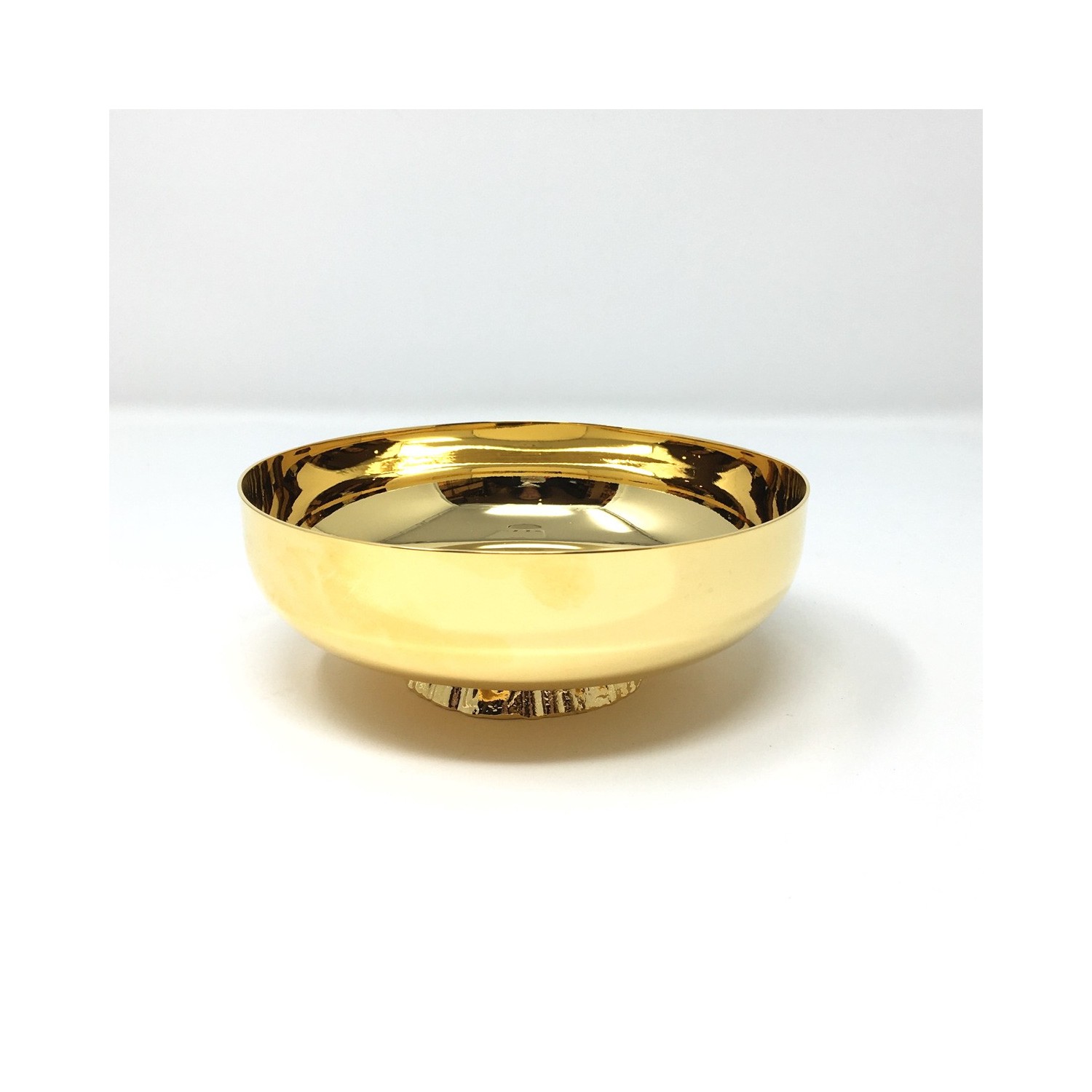 Offertory paten in gilded brass with cast pedestal. Diameter cm 14.