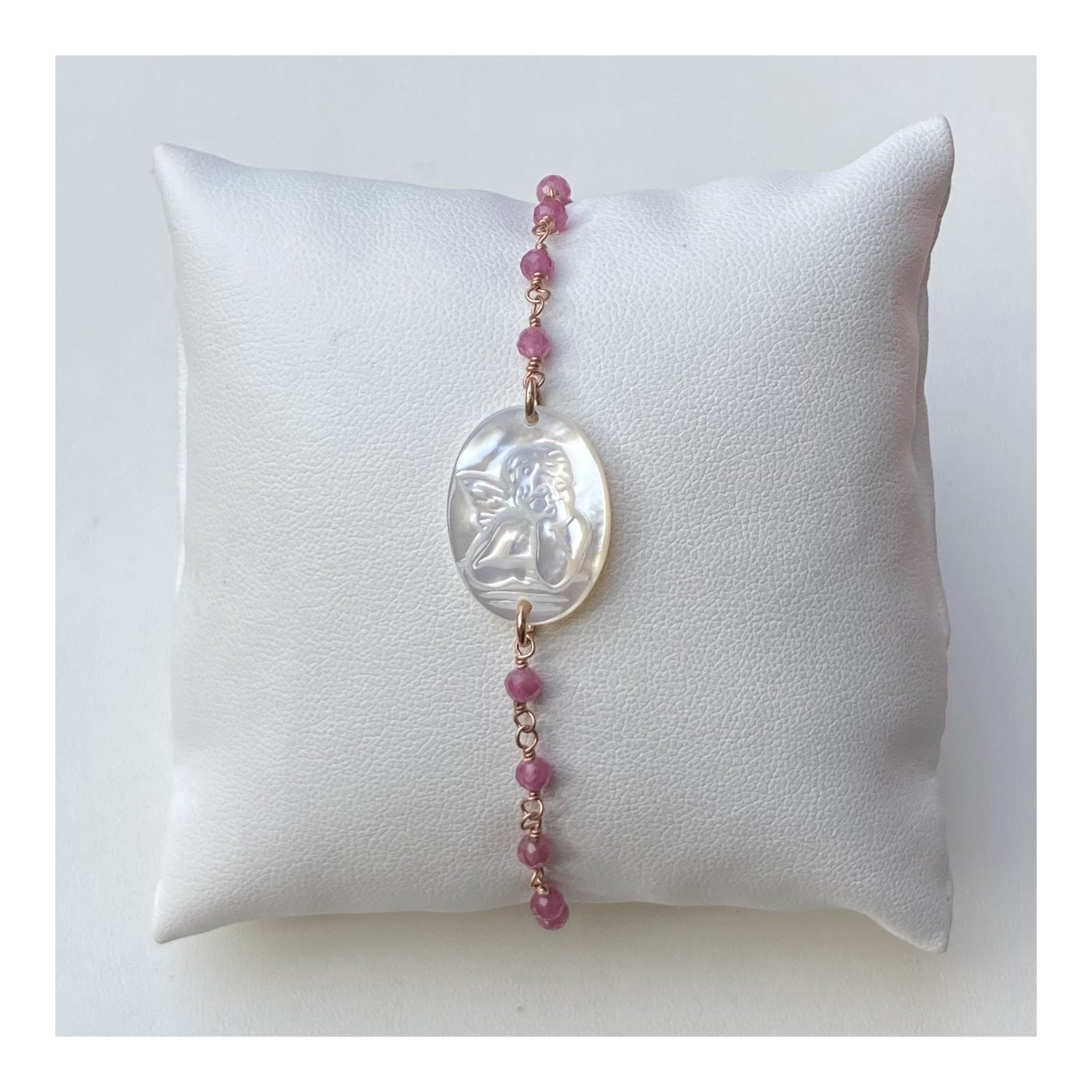 Bracelet in 925 silver, mother of pearl and rose quartz.