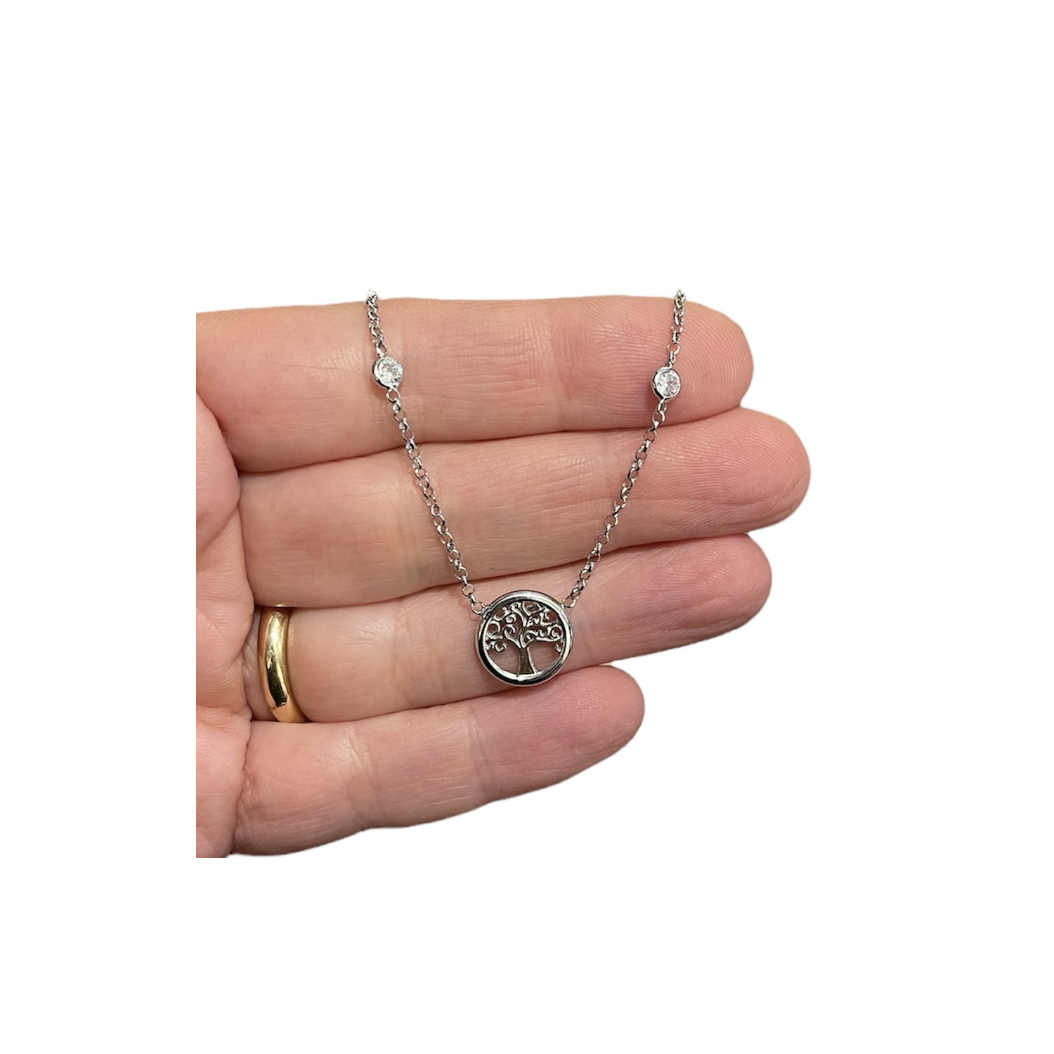 Tree of life pendant necklace in 925 sterling silver and cubic zirconia.