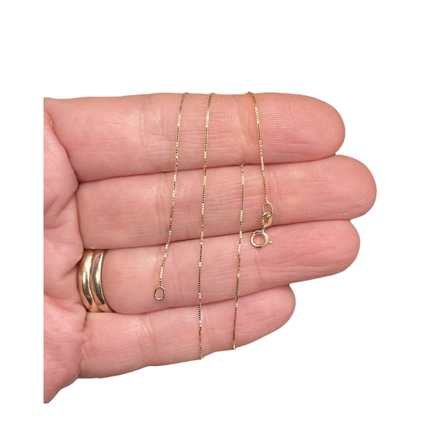 Chain in 18K gold Venetian mesh. Minimum gauge, several lengths available.  Weights and lengths: cm 40 gr 0,90, cm 45 gr 1,10, cm 60 gr 1,25.