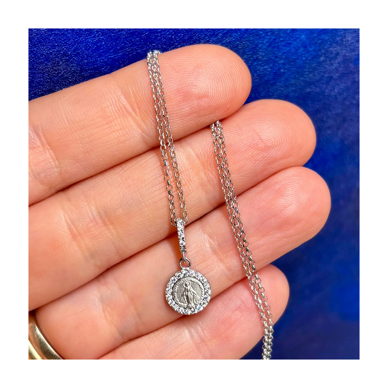 vintage style necklace with Miraculous medal in gilded 925 silver with embedded zircons.
