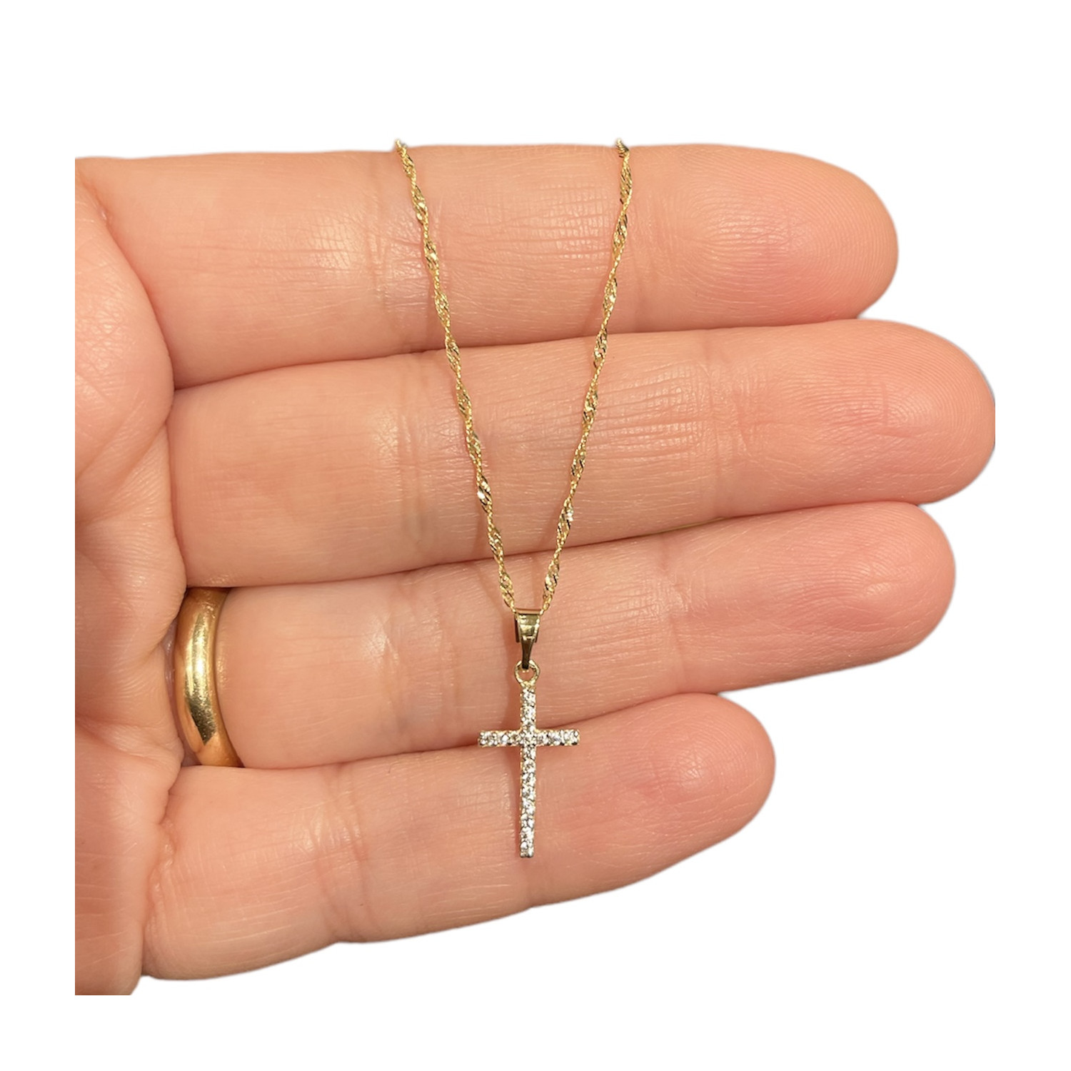 Choker necklace with cross in 18K gold and zircons.