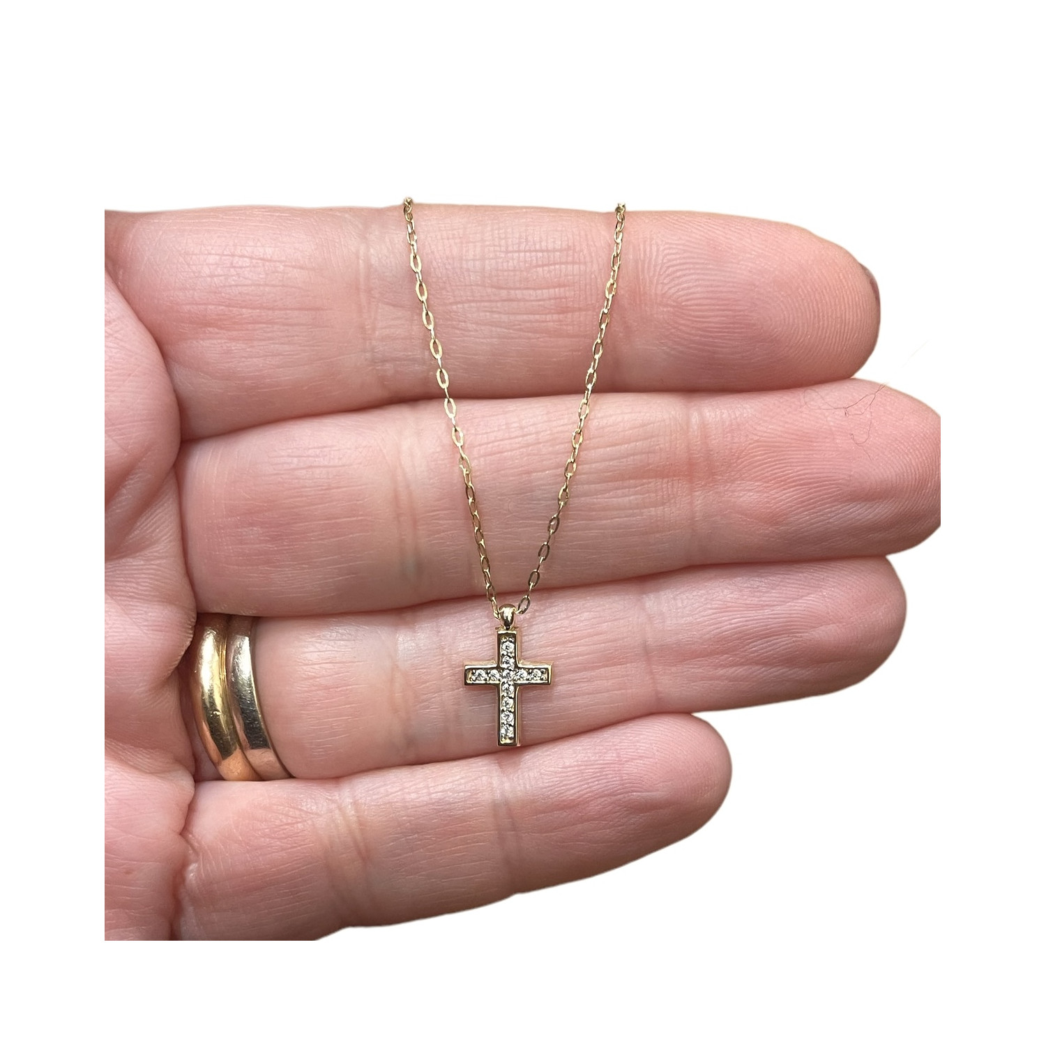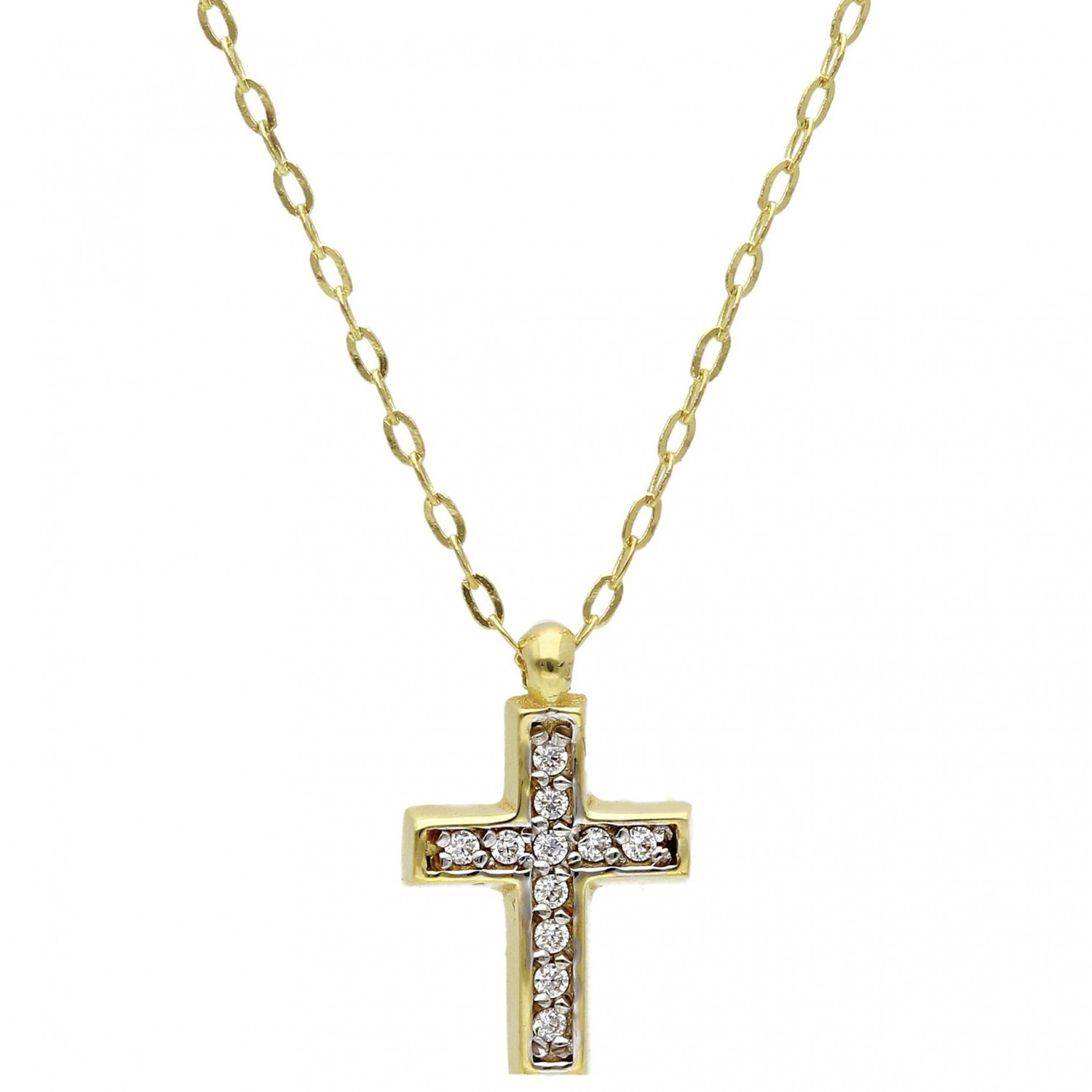 Necklace in 18 carat gold with central cross with recessed zircons.