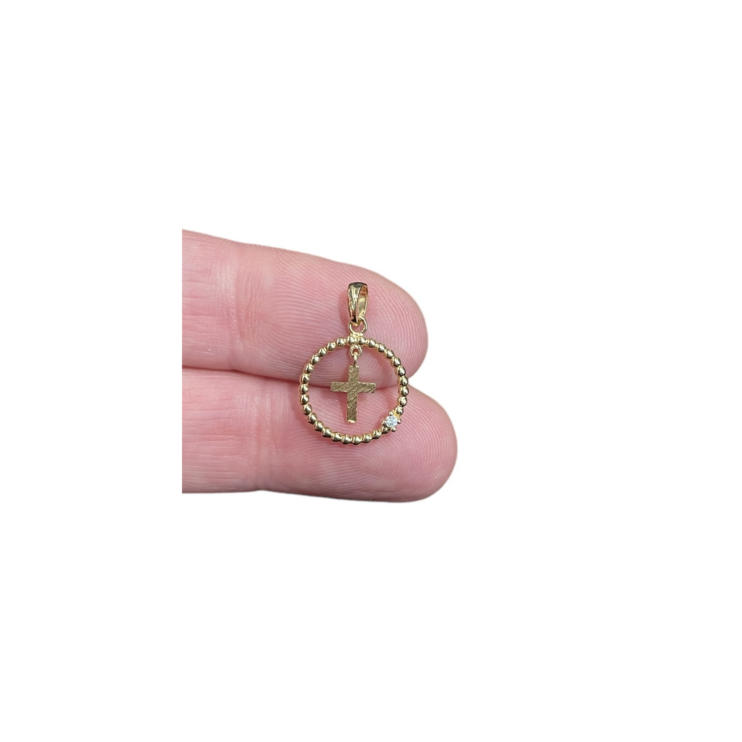 Necklace with pendant in 18k gold and zircon. Chain size 45 cm (soft choker), Venetian link, pendant size diameter 14 mm.