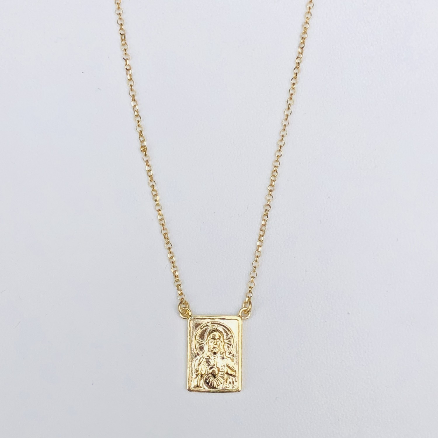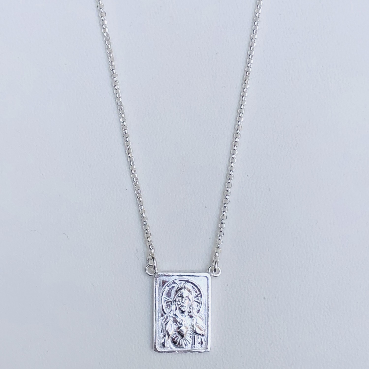 Scapular choker necklace with double-sided medal (Madonna del Carmelo and Sacred Heart of Jesus). Rolo chain in rhodium silver, medal in rhodium, gold or rose silver. Necklace length 46 cm. The devotion of the Scapular was born on July 16, 1251 when Mary Mother of God appeared to St. Simon Stock as an answer to his sincere prayers for assistance. Showing him the scapular he said: “Take this Scapular. Anyone who dies wearing it will not suffer the fire of hell. It will be symbols of salvation, protection from danger, the promise of peace. " .