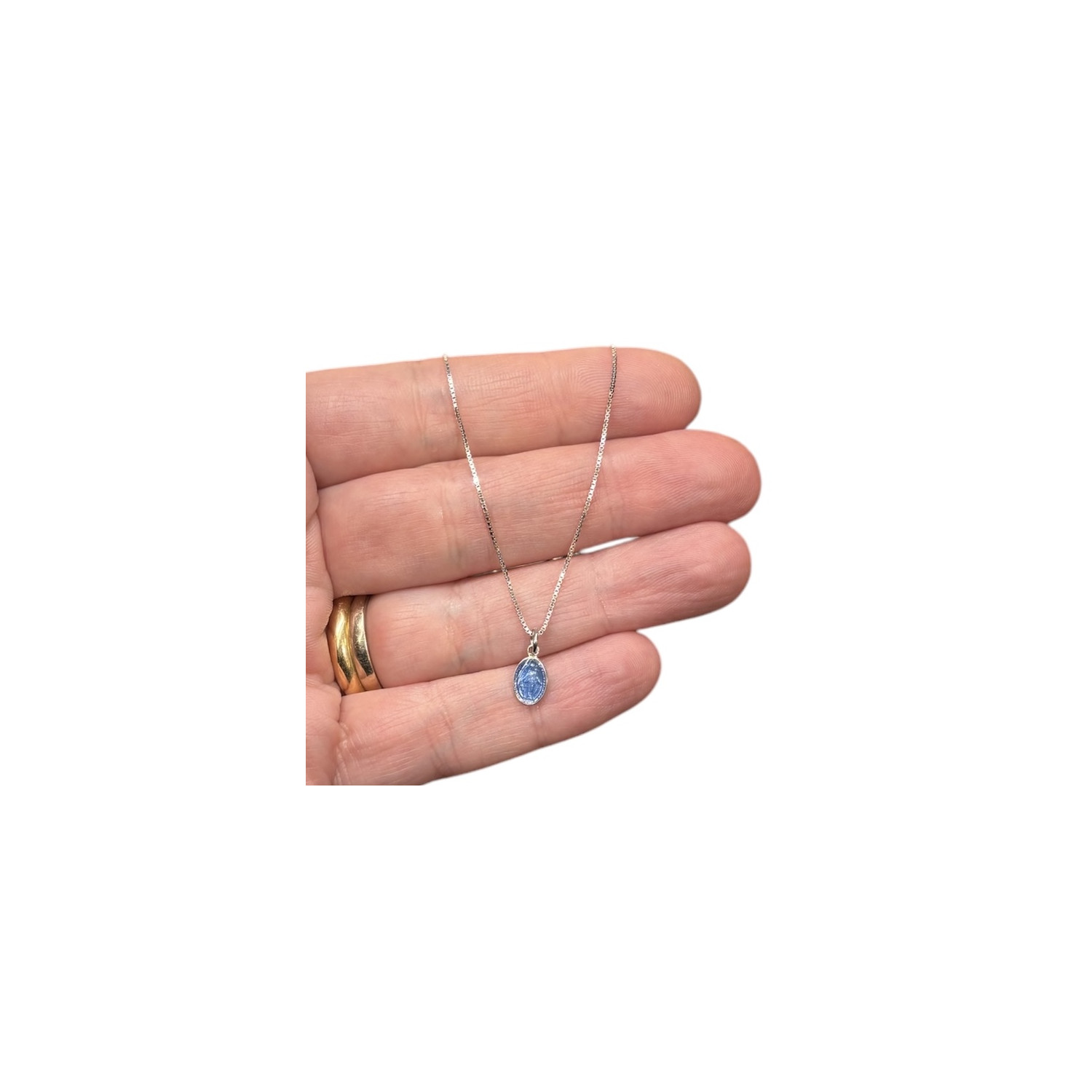 Venetian crewneck chain, length 40 cm, with small Miraculous Medal in 925 enamelled silver.