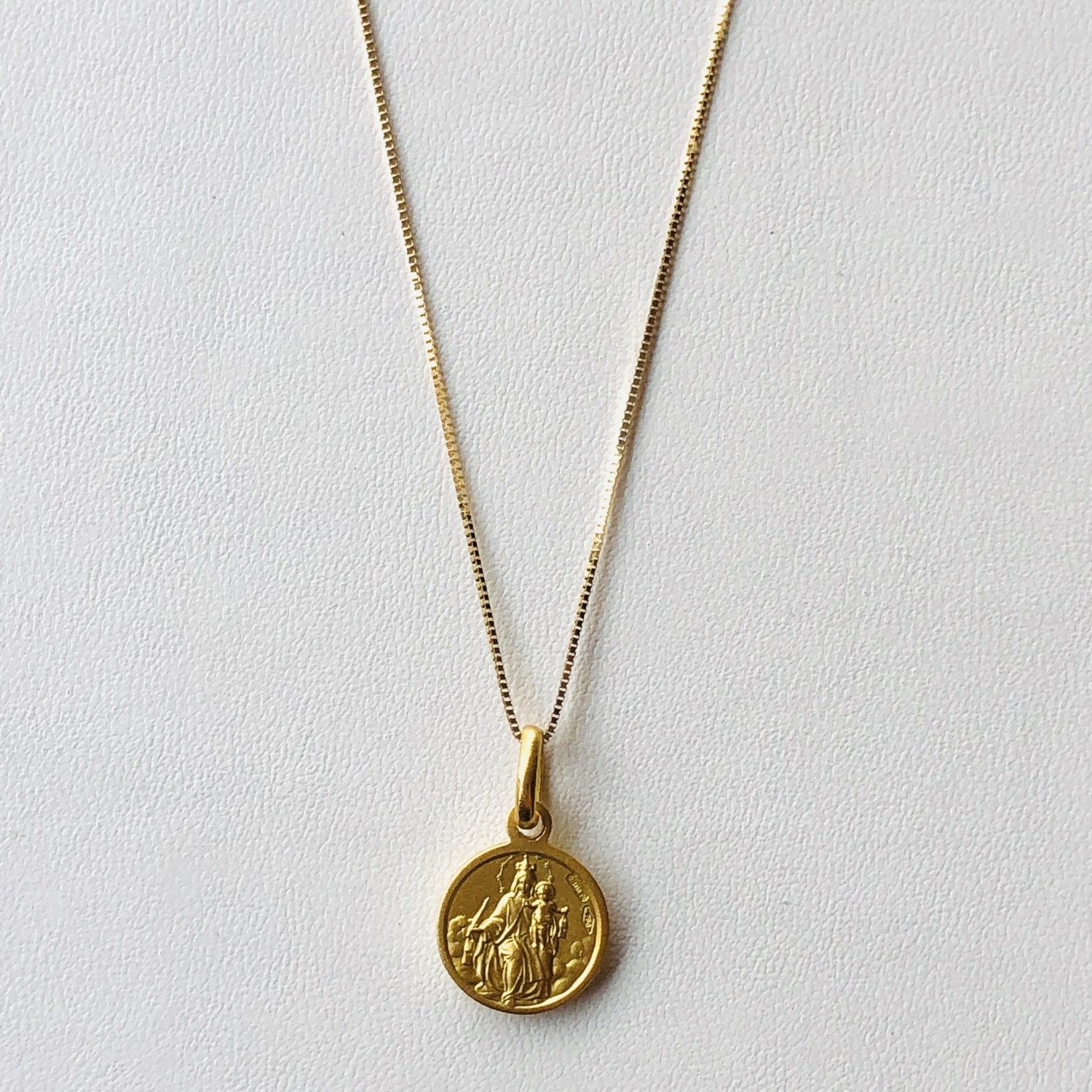 Link chain with Scapular Medal in 18K gold. Medal diameter 10 mm, chain length 45 cm.