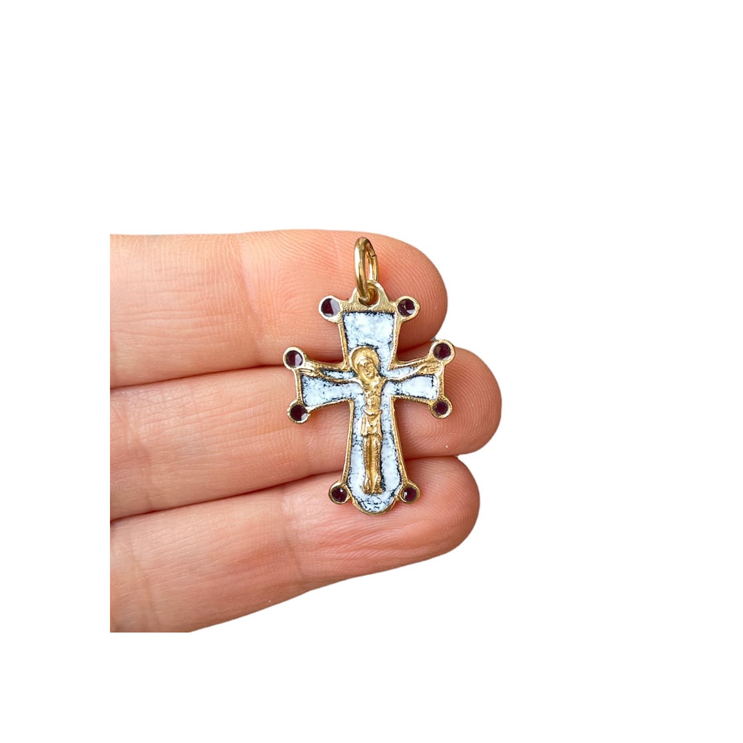 Gilded bronze cross with fired enamel.